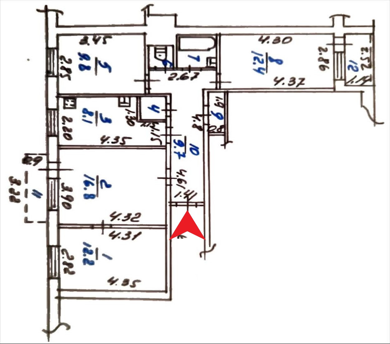 Комнаты 12.2 кв.м, 12.4 кв.м, 16.8 кв.м, 9.8 кв.м