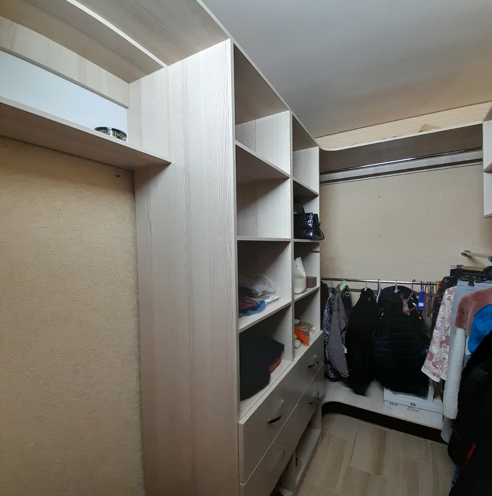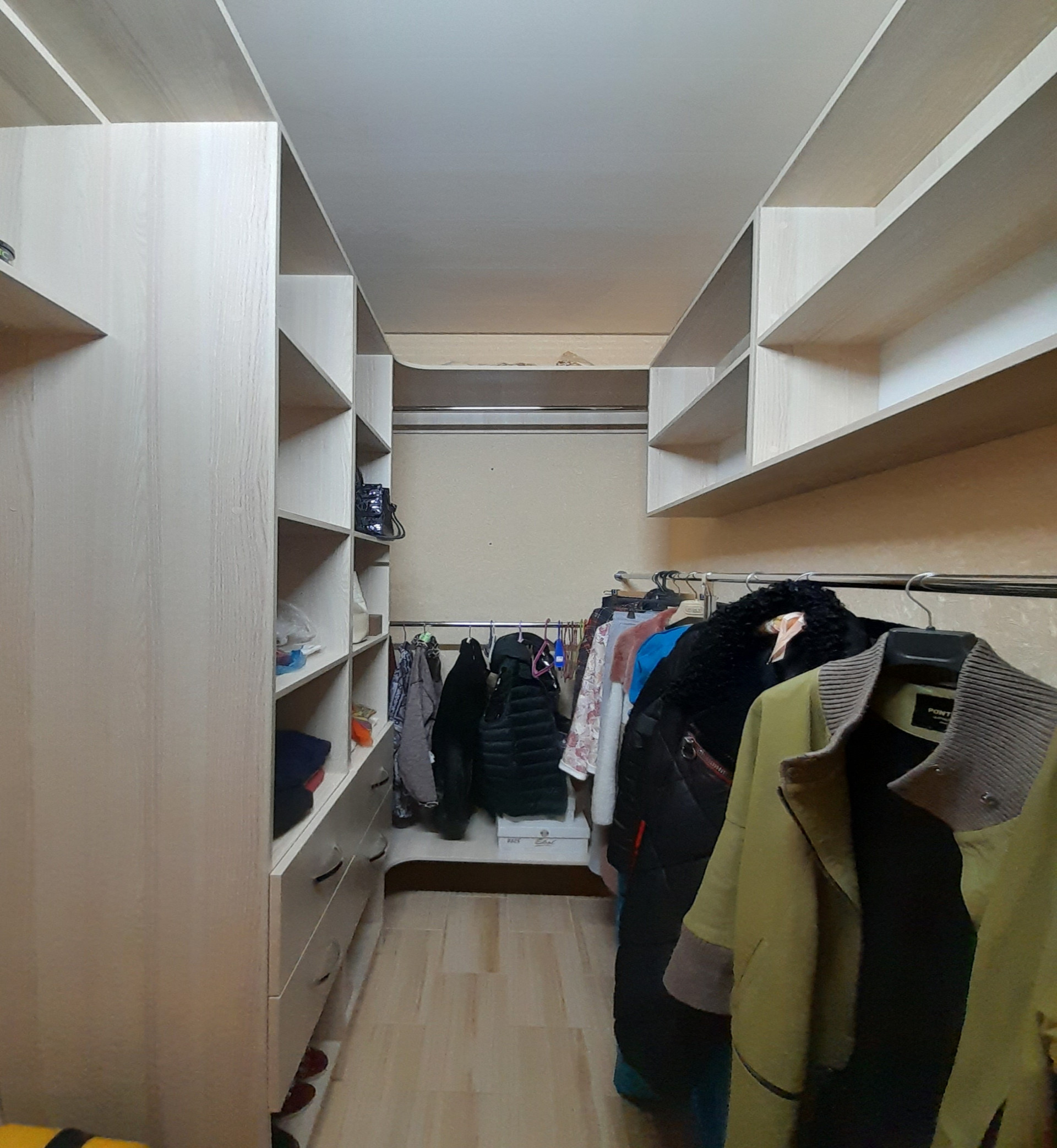 Отличная гардеробная со встроенными шкафами и полками позволит разгрузить жилое пространство