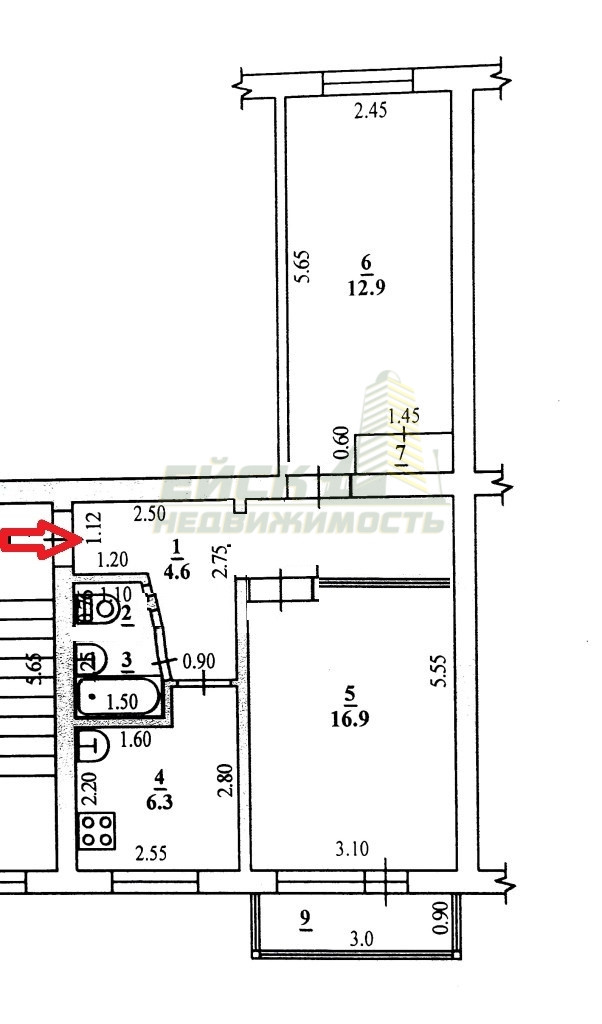 Площадь кухни 6.3 м2