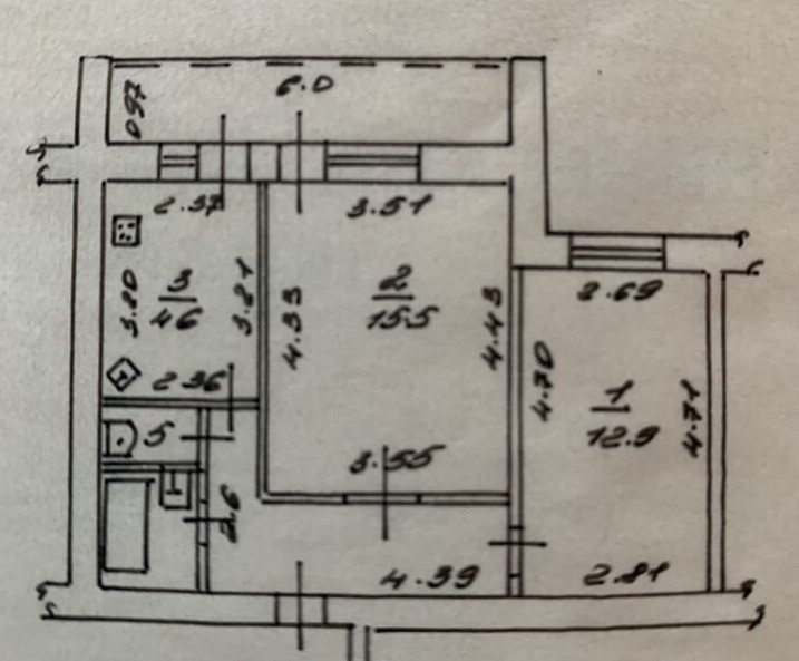 Балкон, лоджия 1 балкон