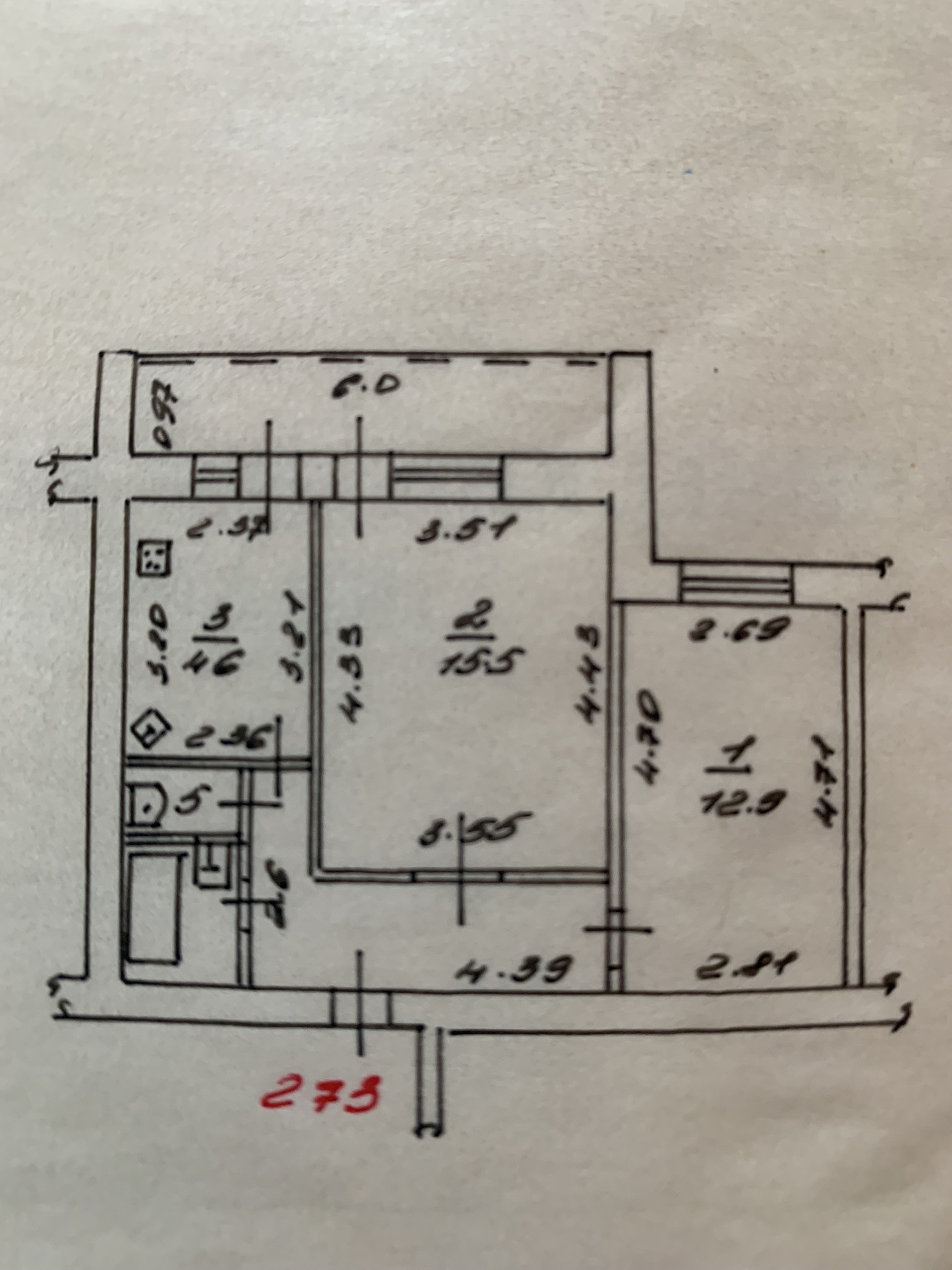 Высота потолков 2.6 м