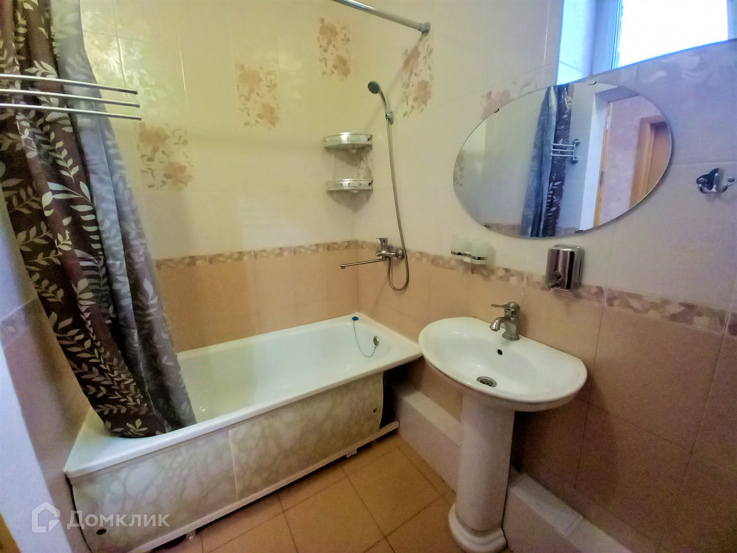 Ванная комната отделана кафелем, что придает ей современный и стильный вид.