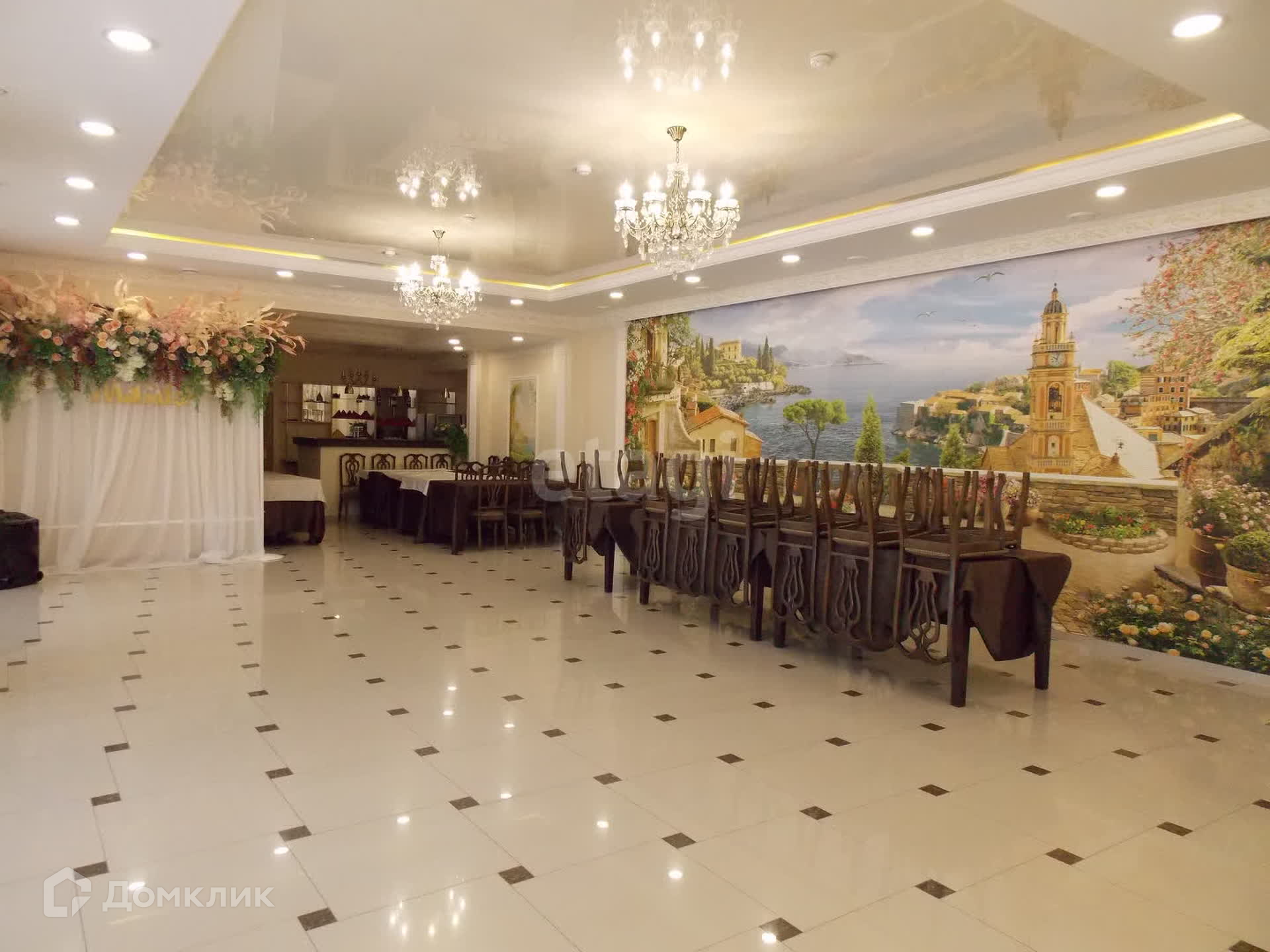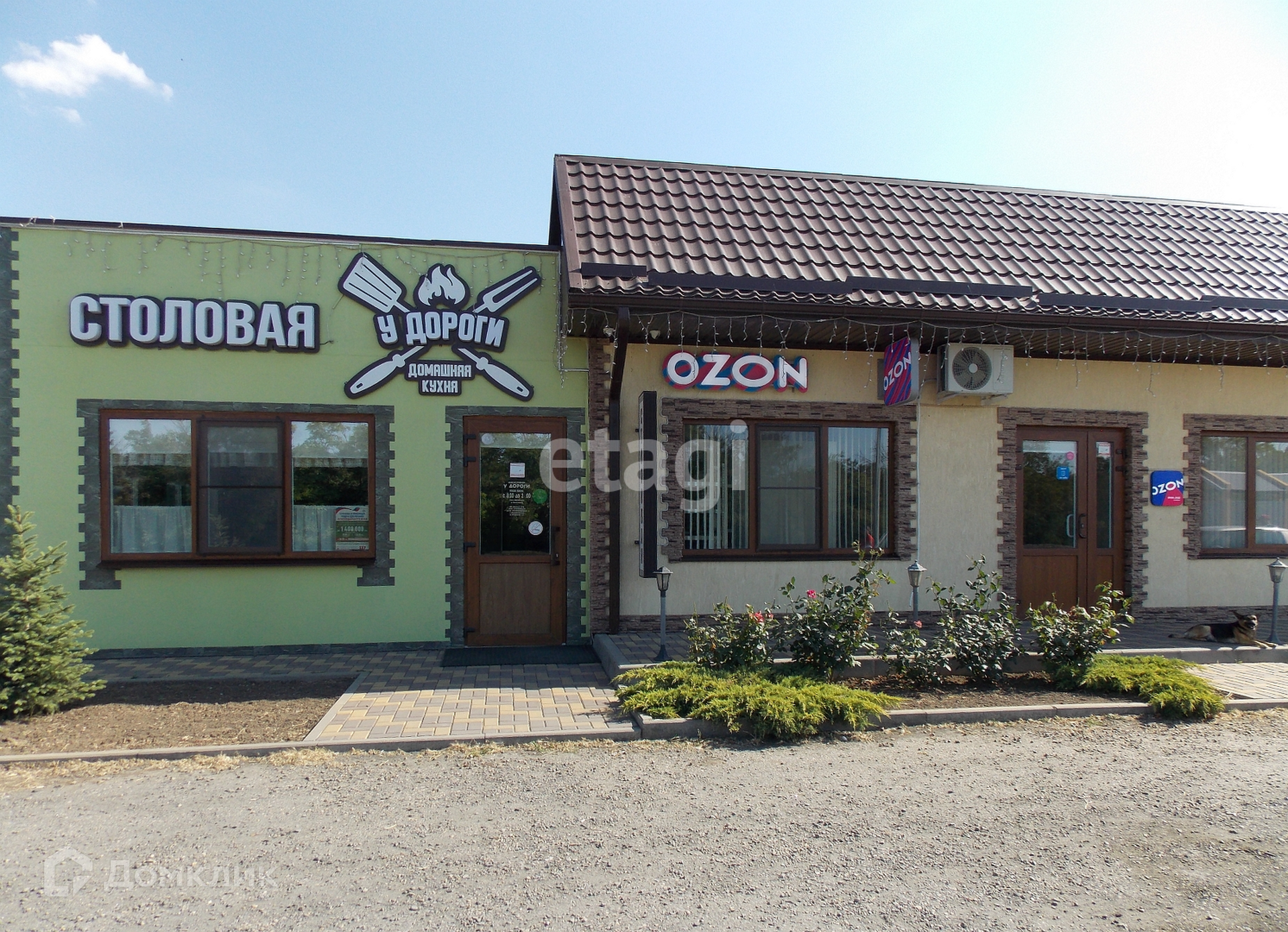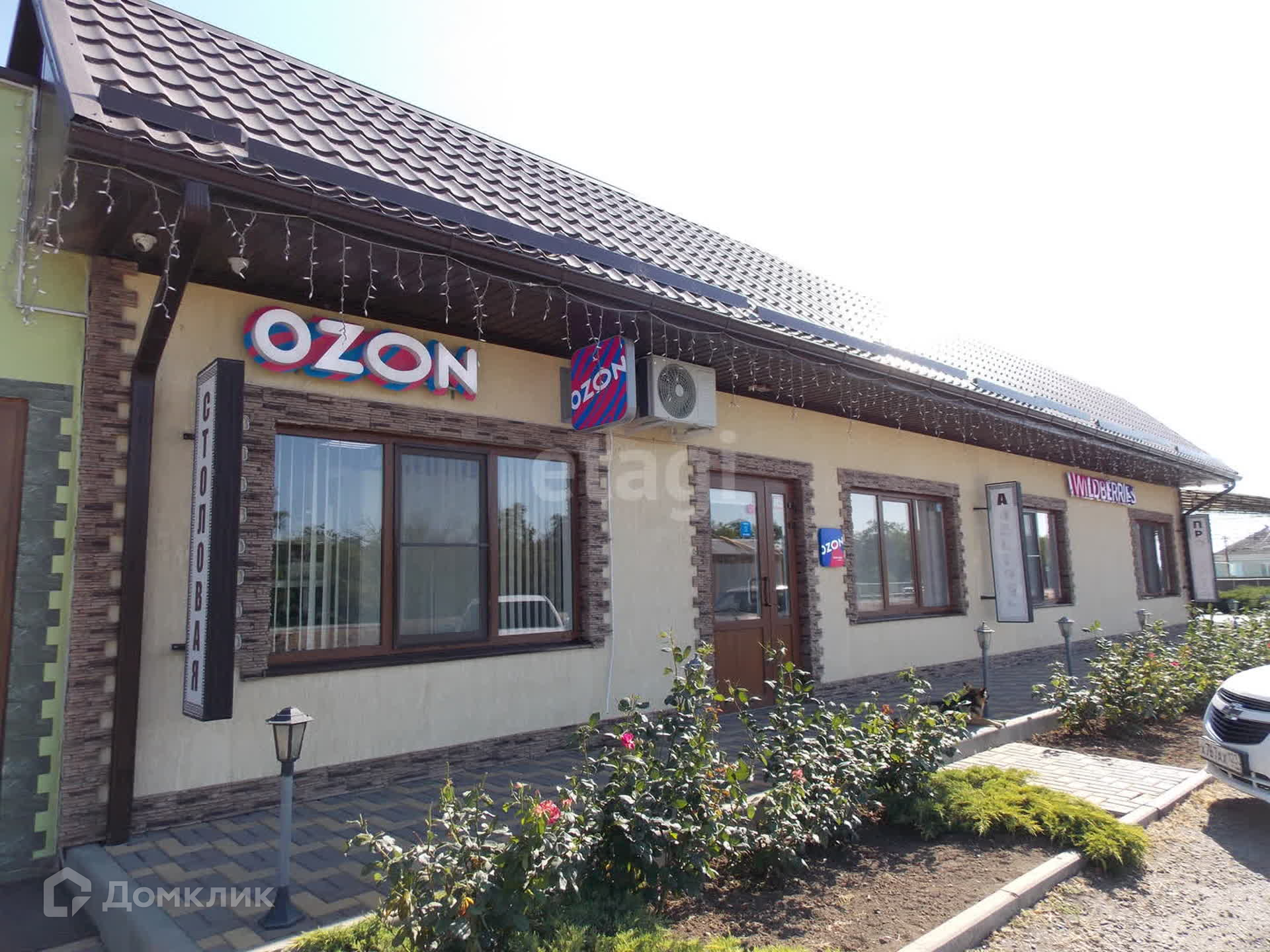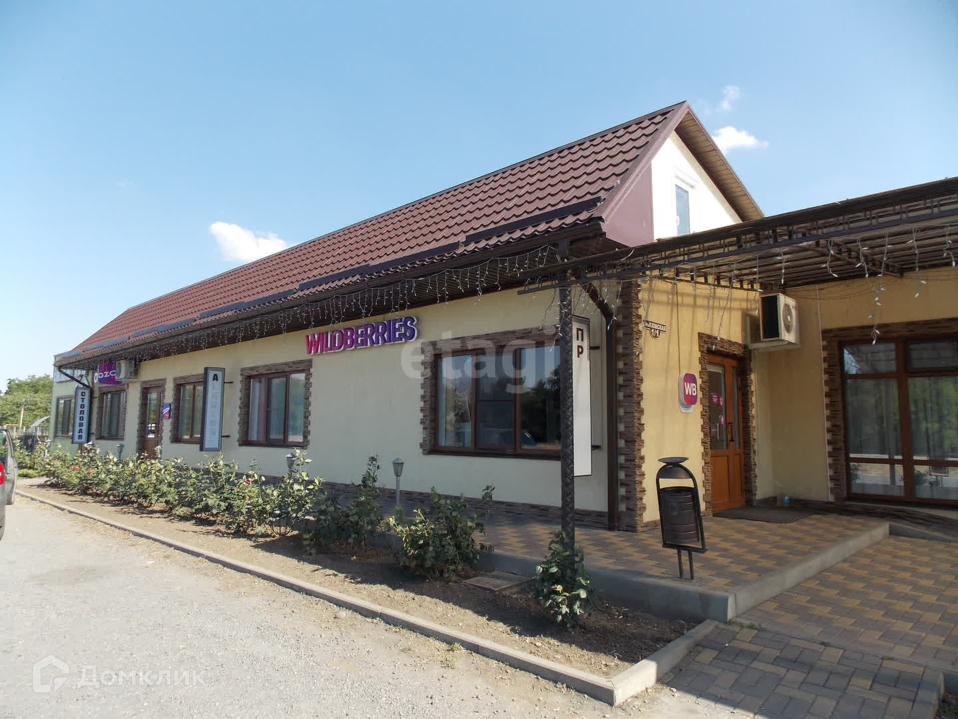 В здании: столовая с летней верандой, банкетный зал с террасой, магазины Wildberries и Ozon, офисное, подсобные и другие помещения. Большая парковка.