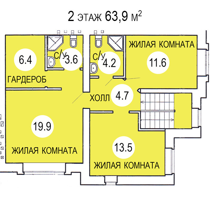2 этаж 63,9 кв м,