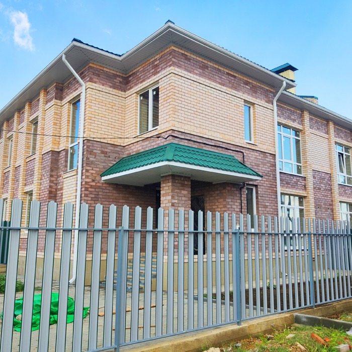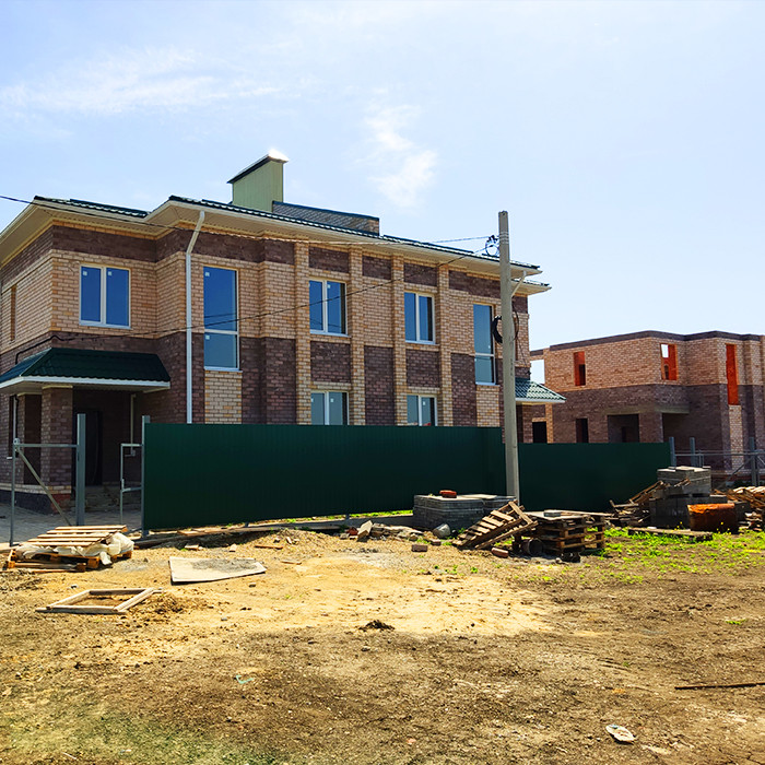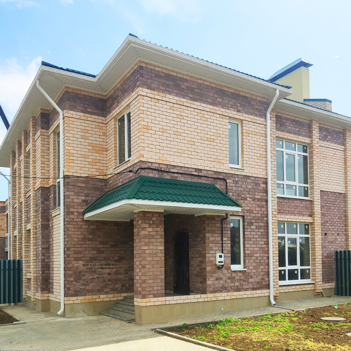 Таунхаус от застройщика. Два этажа. Отдельный вход, свой двор, есть въезд для машины. Дом кирпичный, очень теплый. Сделана электроразводка, выведены коммуникации. Все коммуникации центральные. Сделана хорошая механизированная стяжка и штукатурка. Весь первый этаж - теплый пол. Лестница на второй этаж бетонная. Бетонные плиты перекрытия.