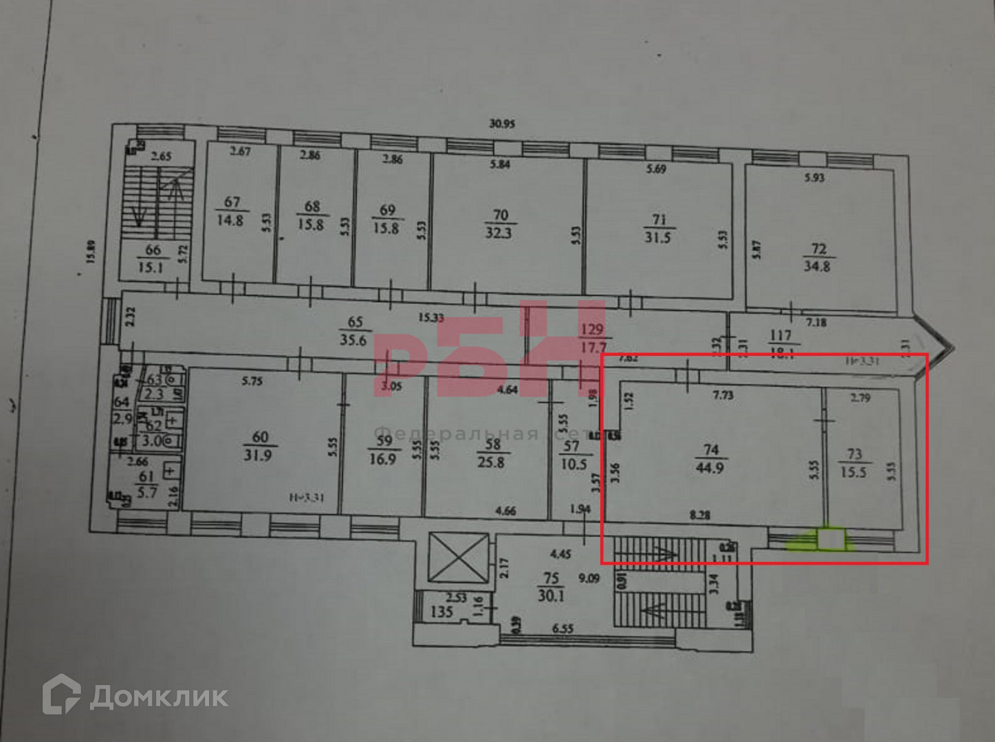 Предлагается в аренду офис, общей площадью 60,4 кв.м.
