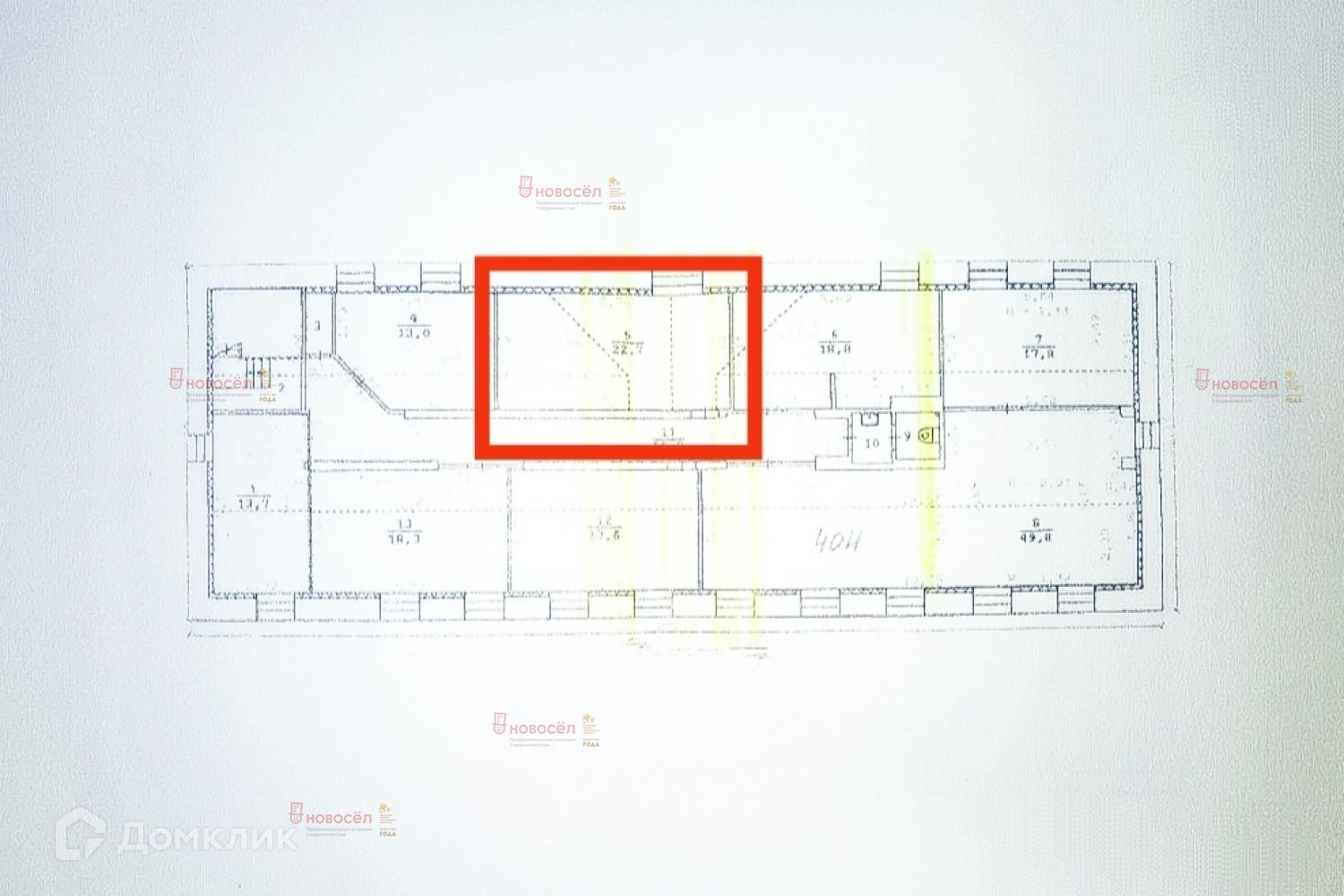 Общая площадь 22.7 м2