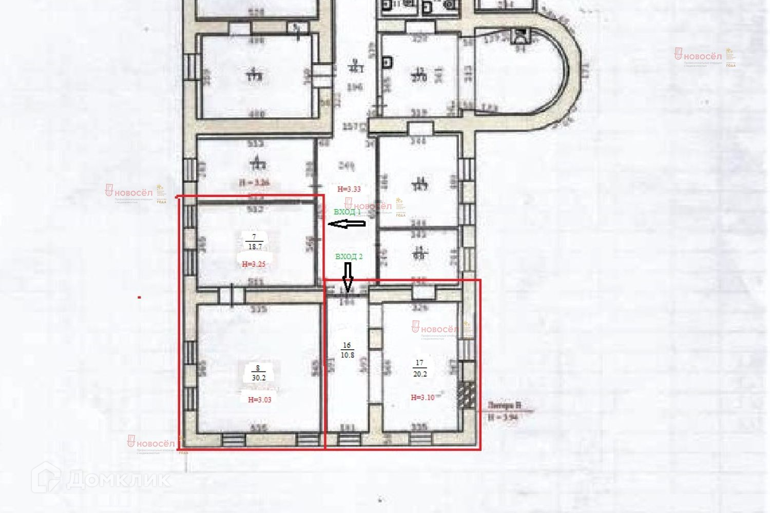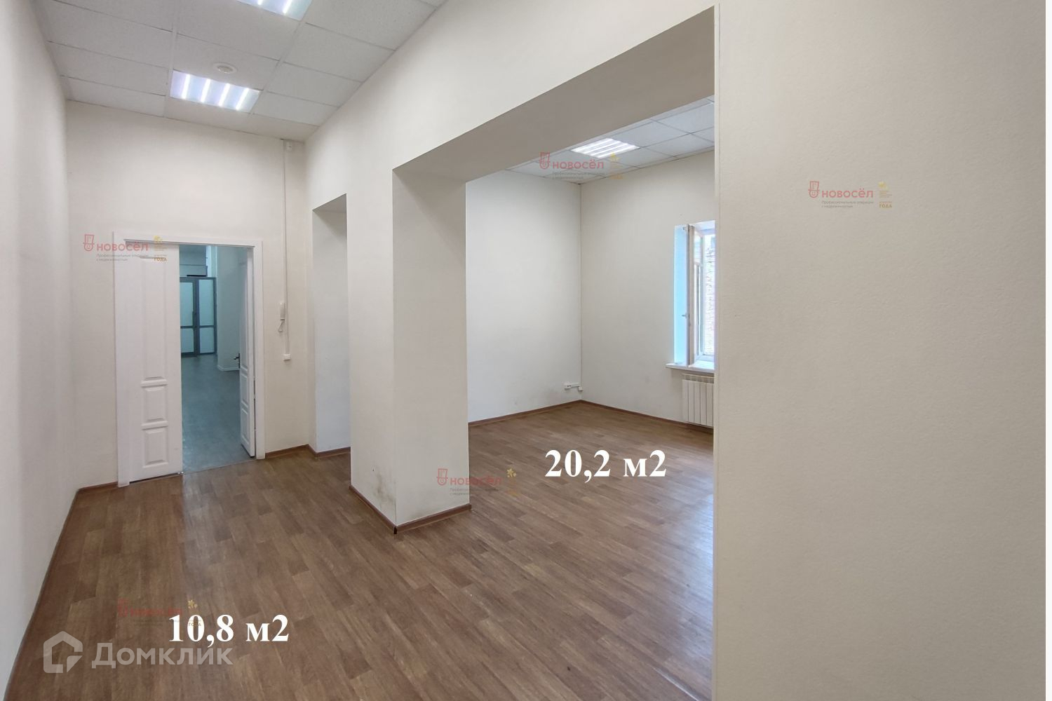 Кабинеты размером 10,8 м2 и 20,2 м2 имеют общую дверь с замком, образуют отдельный офис,  обозначенный на плане и фото номером 2.