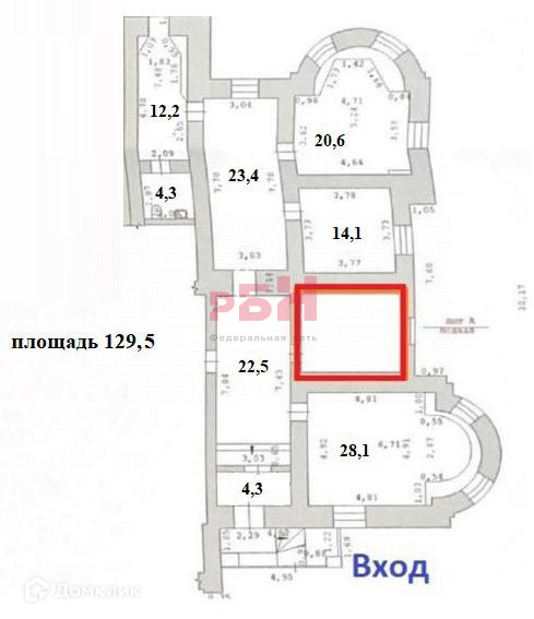 - площадь помещения 129,5 м2, с возможностью увеличения арендуемой площади