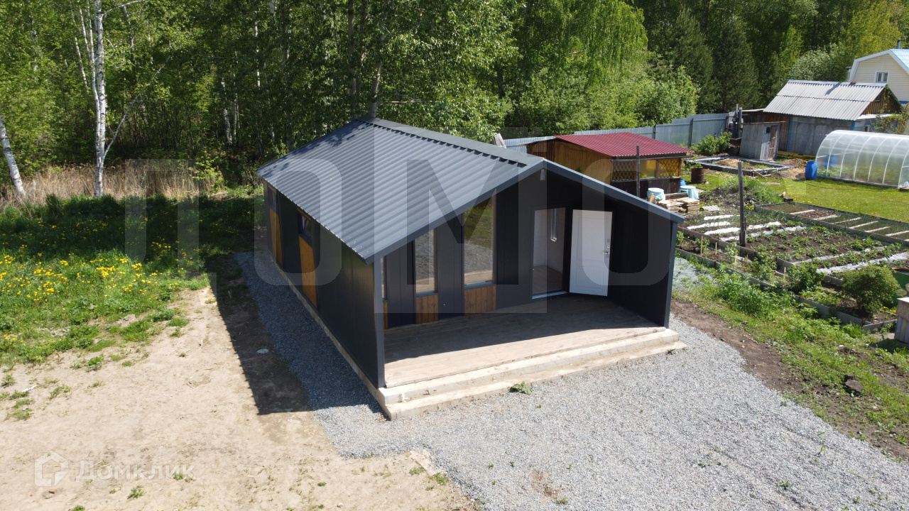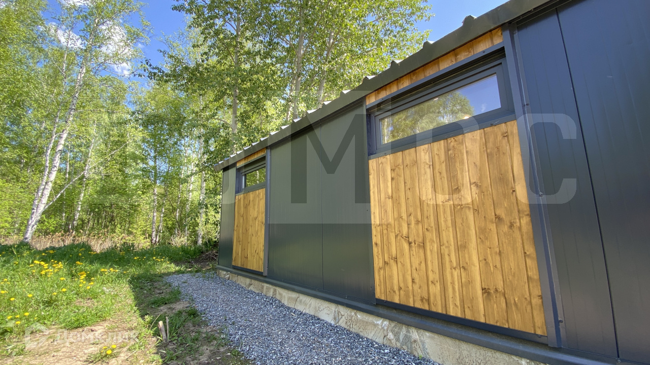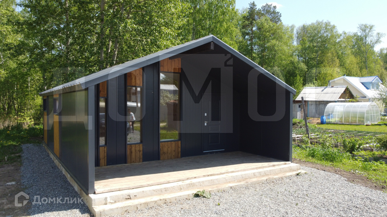 Дом расположен по Полевскому тракту в СНТ Надежда, в 5 км от Горного щита в черте г. Екатеринбург с городской пропиской. ИЖС.Удачное расположение участка с примыканием к лесу. Отличная дорога - асфальт и щебенка.Проживание в СНТ круглогодичное, новые дома. Рядом с СНТ котттеджная застройка, растет инфраструктура.ХАРАКТЕРИСТИКИ ДОМА:Стиль барнхаус, выглядит стильно и шикарно!Дом 1 этажный, общая площадь 59 кв.м. Дом очень теплый и светлый!Возможна ипотека, материнский капитал.- Полная сумма в ДКП.- Один взрослый собственник.- Фундамент: ленточный из бетона 350 марки (из него строят многоэтажные дома).- Крыша сэндвич из металлочерепицы.- Стены с утеплением по всему периметру дома.- Полы утеплены 150мм- Окна ПВХ и стеклопакеты- Металлическая входная дверь с терморазрывом.Широкая веранда выходит на южную часть участка!!!!! ДОМ ПОЛНОСТЬЮ ГОТОВ К ЗАСЕЛЕНИЮ, со всеми инженерными и отделочными работами.Пол - ламинат, стены - вагонка, потолок - натяжные.Хорошо организовано освещение, даже в пасмурные дни в доме светло и уютно!ЭЛЕКТРИЧЕСТВО - счетчики, розетки, выключатели.ВОДОСНАБЖЕНИЕ - разводка труб ХВС и ГВС, канализации (септик).САНТЕХНИКА - унитаз, душевая кабина, раковина, водонагреватель, скважинная автоматика.ПЛАНИРОВКА:Кухня-гостиная > 20 кв.м., санузел 3,7 кв.м., 2 спальни по 8,12, терраса 14,6 кв.м.Высота потолка в центральной части 3,40 м, со скосом к стенам до 2,10 м.ТЕХНИЧЕСКИЕ ХАРАКТЕРИСТИКИ:- электричество 15 кВт, 3 фазы.- отопление – конвекторами. Можно поставить камин. Сам дом очень теплый и зимой выходит неплохая экономия на электричестве.- вода в дом заведена из скважины.- канализация в дом заведена, септик на территории.- поселки рядом газифицируются, в наш СНТ газ тоже планируется завести.- ЗЕМЕЛЬНЫЙ УЧАСТОК 5 соток, ровный.ТРАНСПОРТ:Автобусная остановка в 50 метрах. Автобусы 120, 143. 145. Периодичность 20 минут.От Горного щита по Полевской трассе 5 км.P.S/ Возможен заказ подобного дома большей площади на вашем участке. Быстрое возведение, круглогодичное проживание от 1,5 млн.руб.