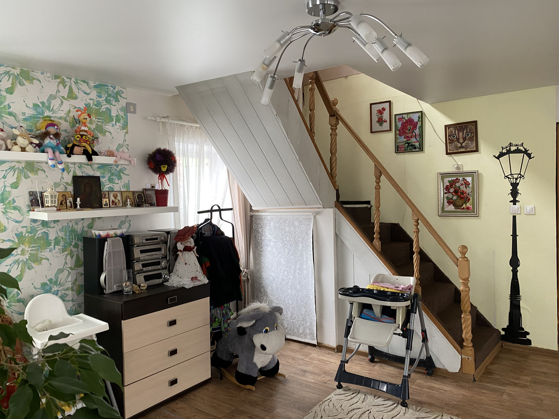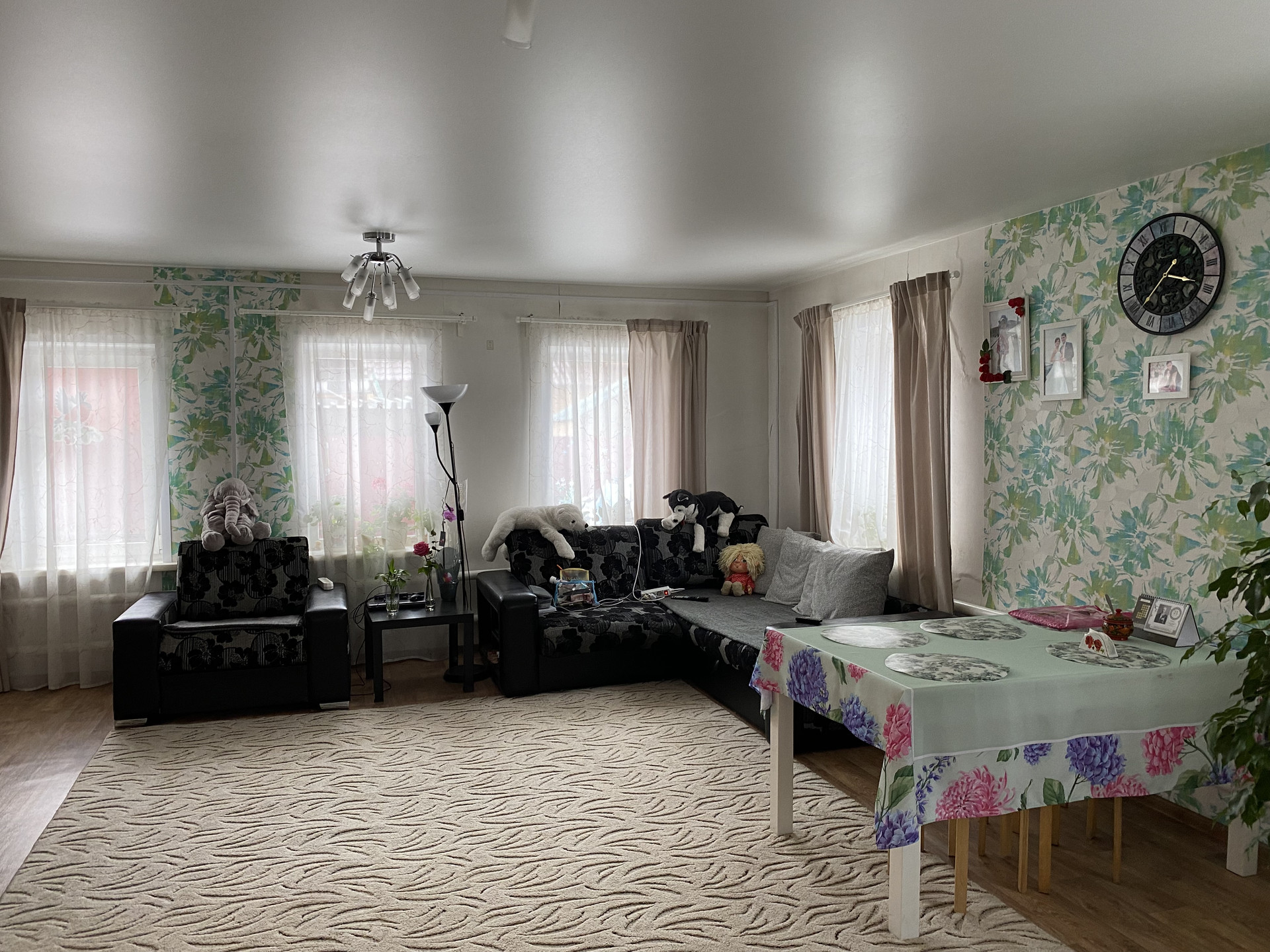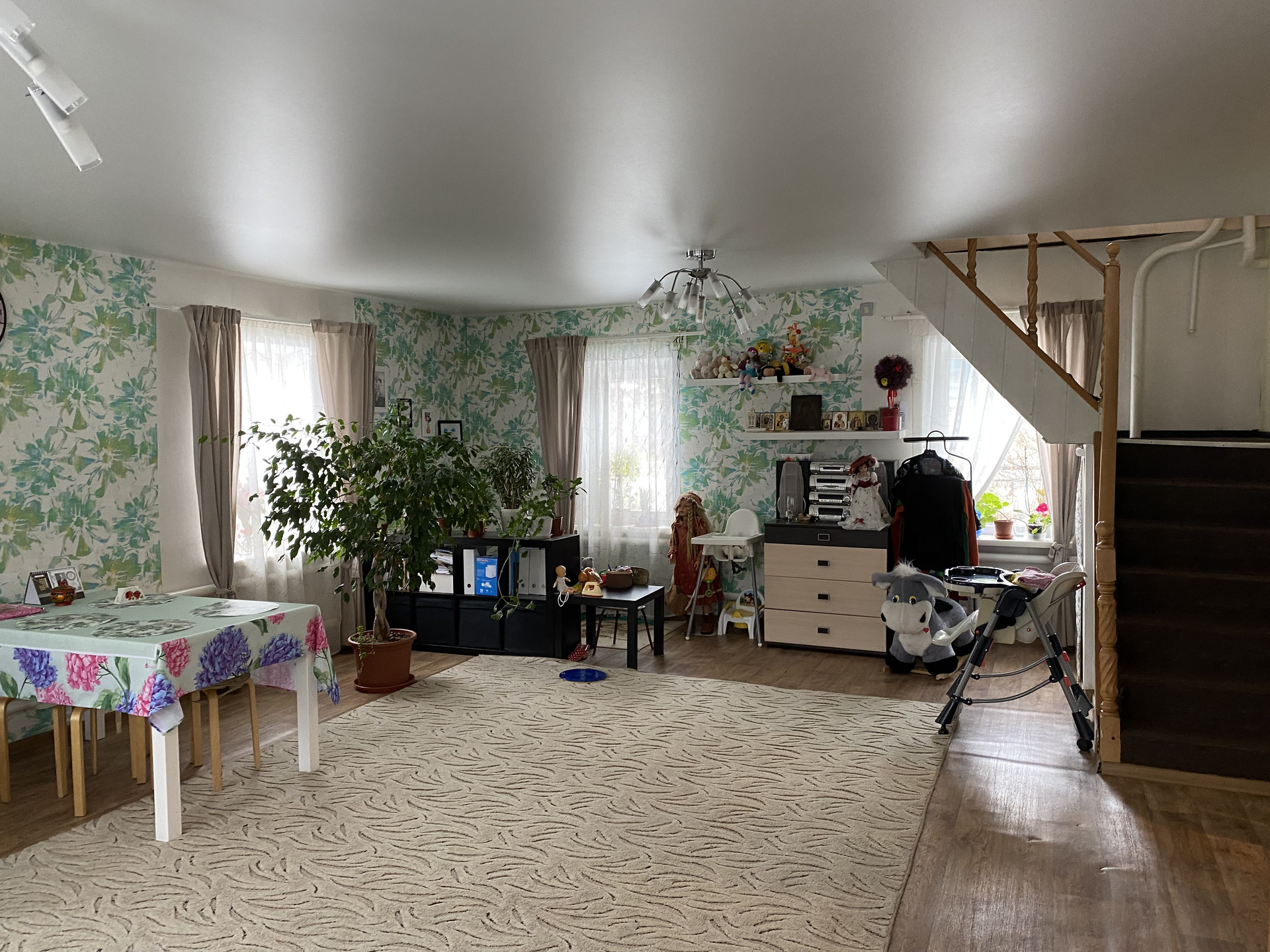 1-этаж - Комната ( кабинет), кухня, большая гостиная на 7 окон ( при желании можно легко разделить на 2,3 комнаты). Большой коридор, очень просторный сан. узел с ванной. 2 этаж- большая единая Комната на несколько окон ( также при желании легко разделить на 2). На 2 этаже ещё есть помещение примерно 25 кв,м ( не утеплено) можно утеплить и сделать ещё Комнату. Потолки везде натяжные, окна пластик, состояние дома отличное- можно заехать и жить без вложений. Остается кухонный гарнитур, угловой диван. Все соседи порядочные, живут круглогодично. Помогу с ипотекой для покупки данного дома, даже со сложными ситуациями. Звоните обсудим.