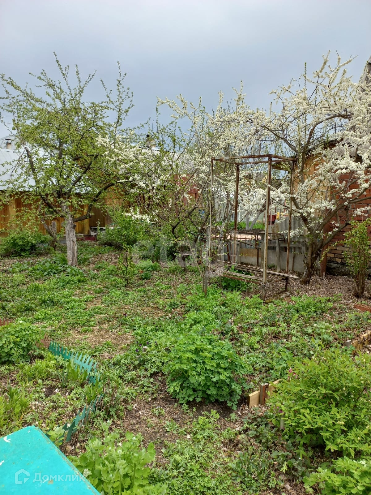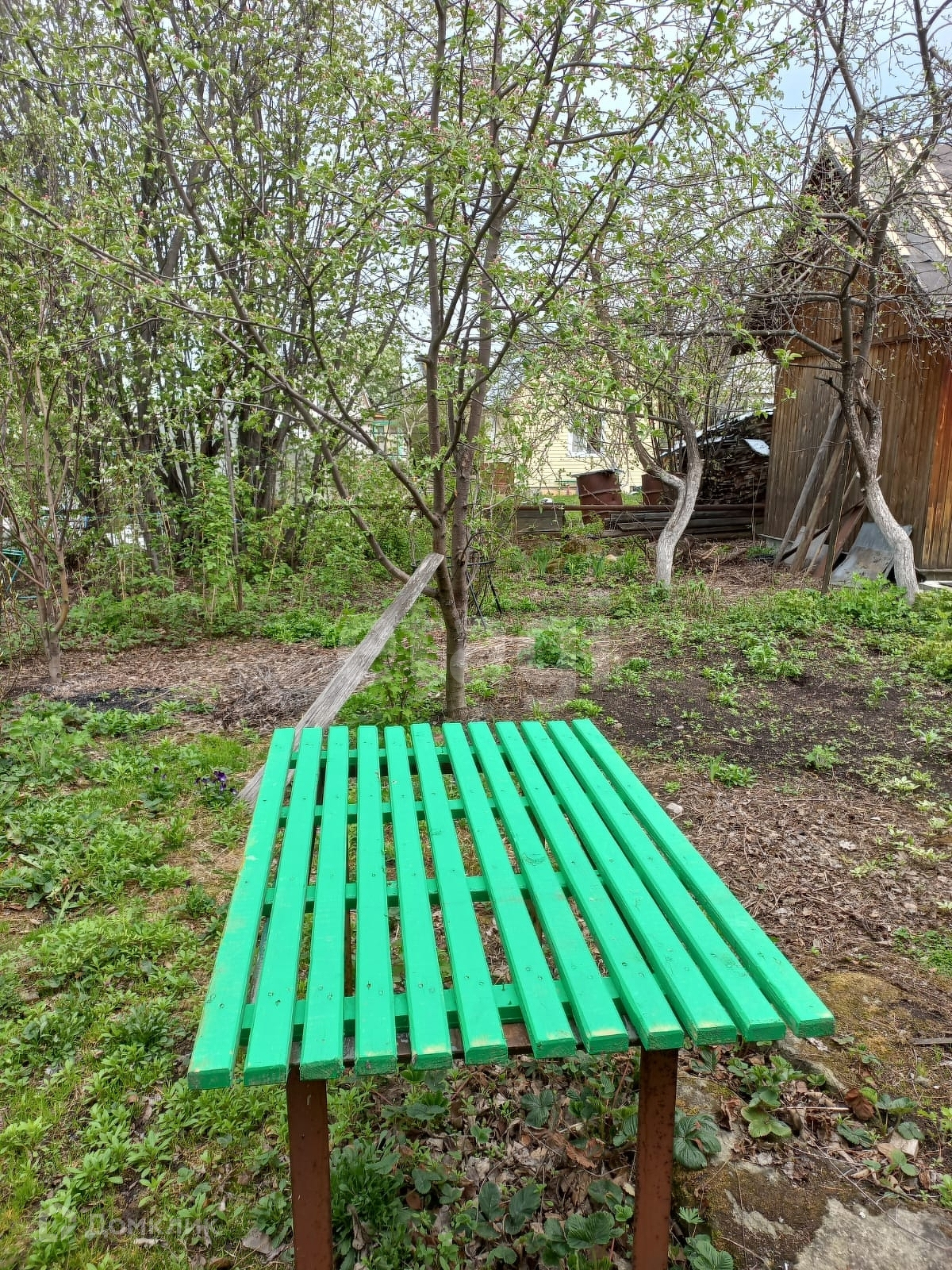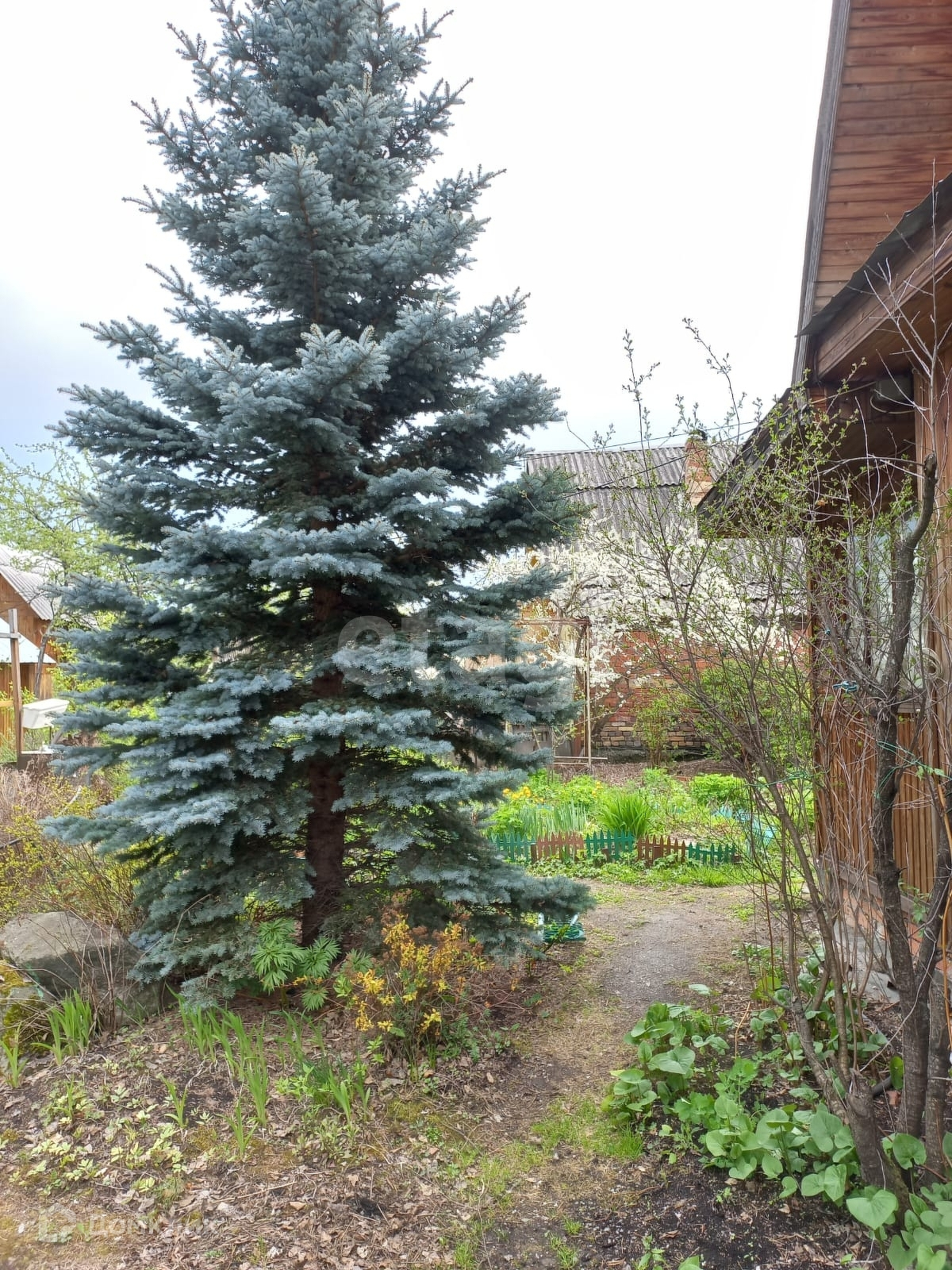 На участке много плодоносящих деревьев и кустарников.