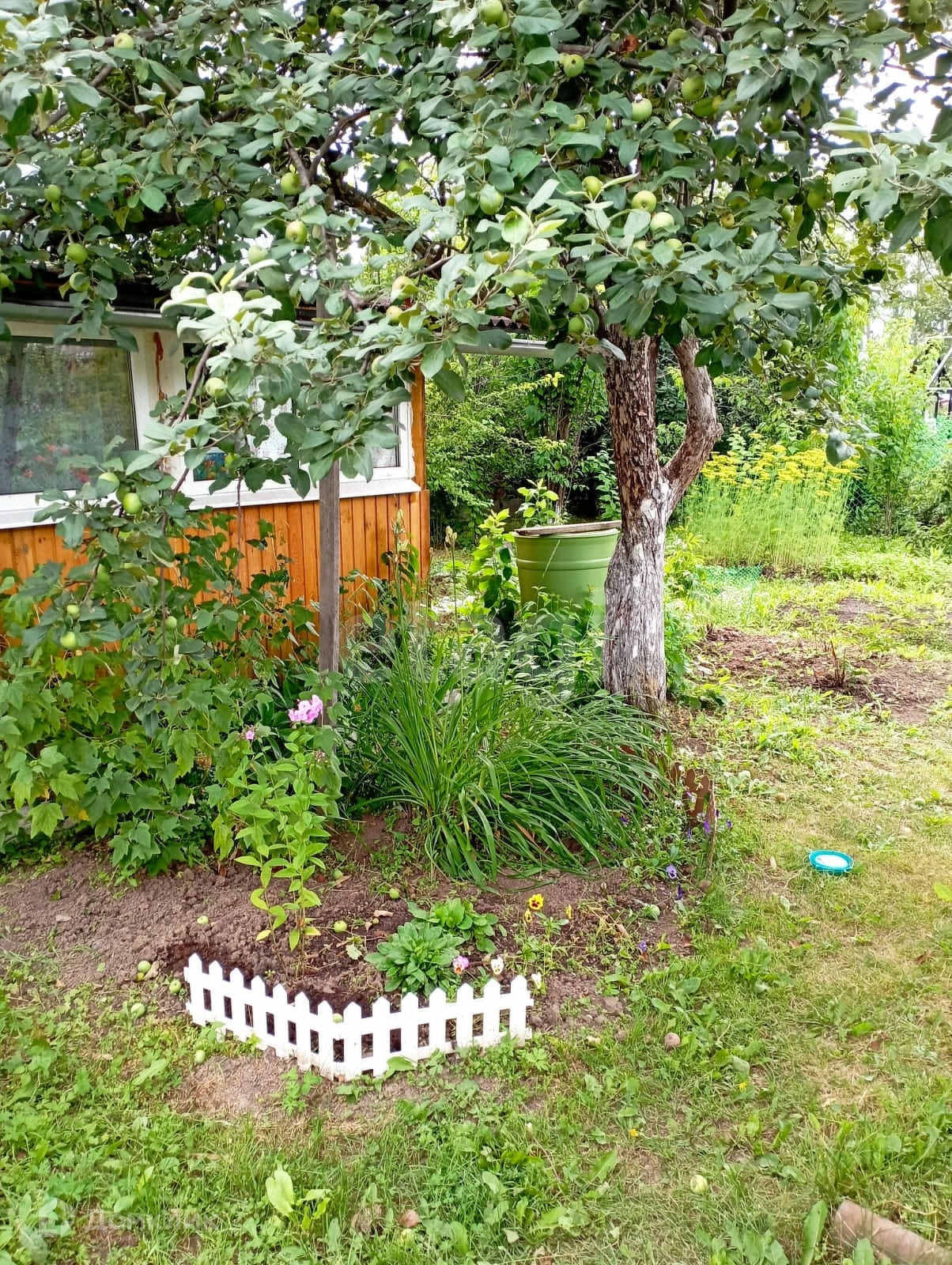 очень много цветов, деревья плодовые: яблони, вишни, груша, абрикос, слива йошта, смородина: красная, белая, чёрная, крыжовник, малина и много клубники.Все  рядом что необходимо для комфортного проживания: магазины, детский сад,  школа, рядом автобусная остановка. В шаговой доступности озеро Шарташ.