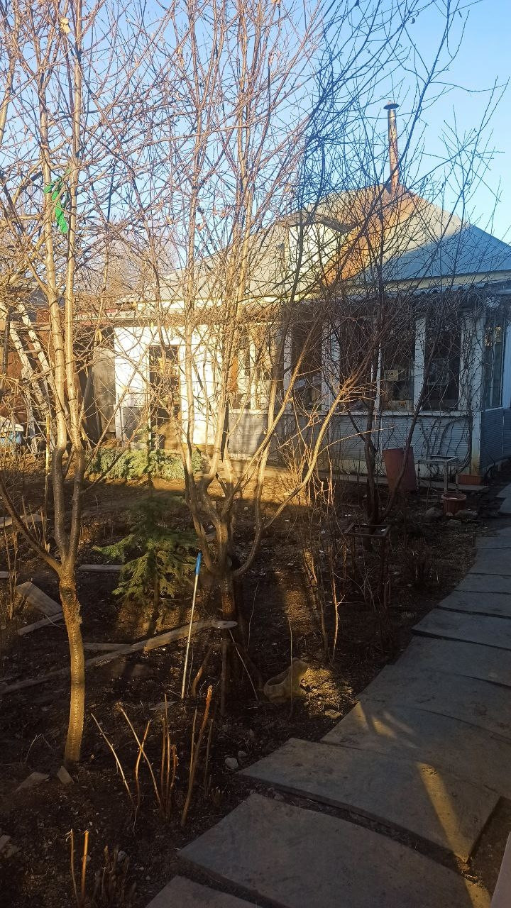 Продаю земельный участок с домом. Участок разработан, есть яблоня и вишня. На участке есть отапливаемый гараж с овощной и смотровой ямами, баня, два домика: один жилой, второй используется как мастерская. Отопление печное, есть скважина и канализация.