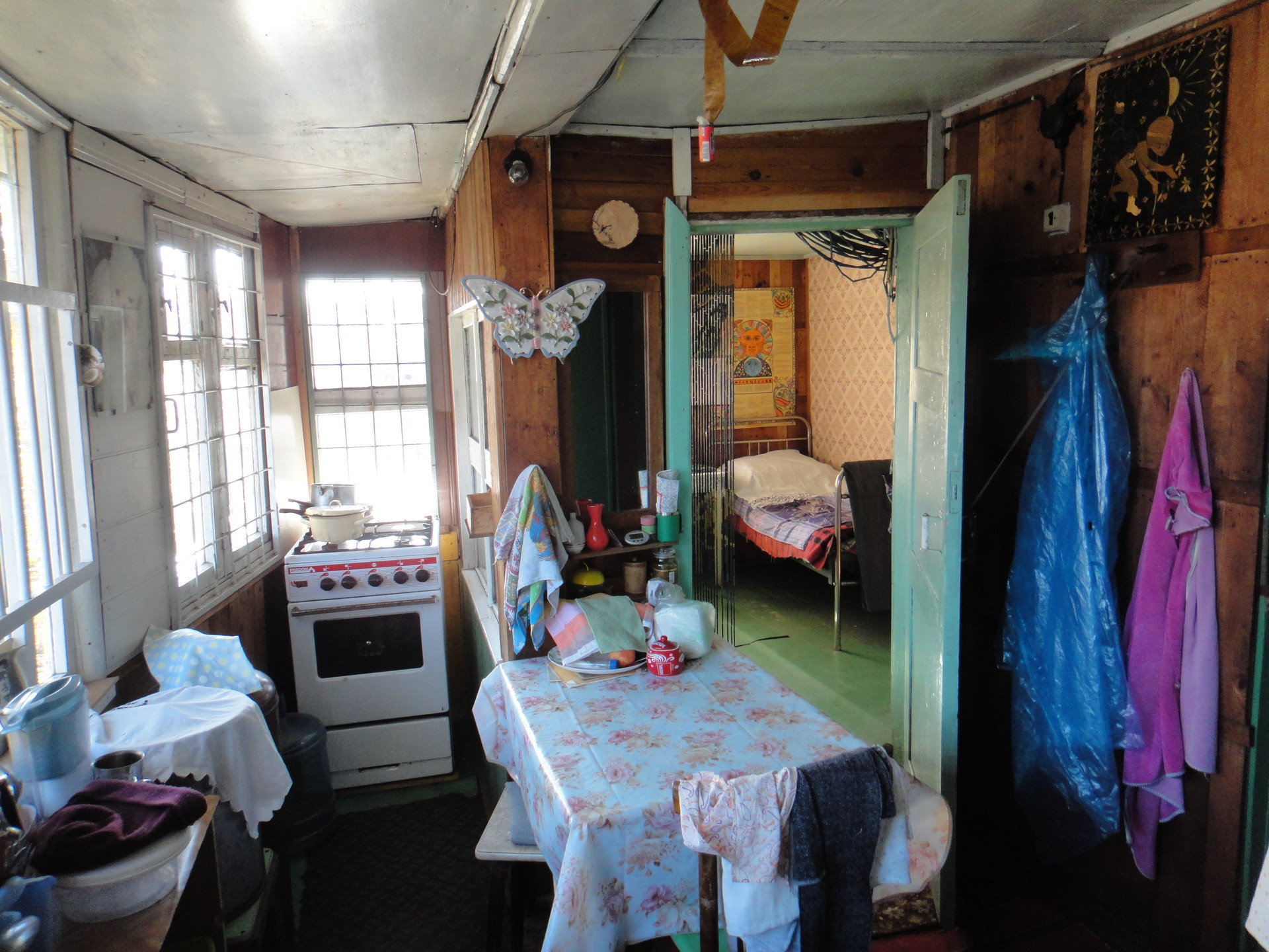 В доме можно жить зимой. 3 комнаты + мансарда. Есть печь, газ привозной в баллонах, 2 этажа, большая кладовка, погреб. Баня небольшая, но хорошая.
