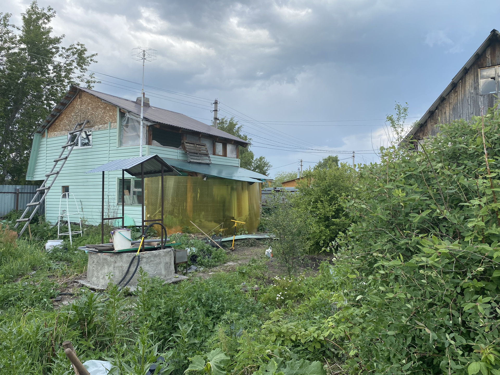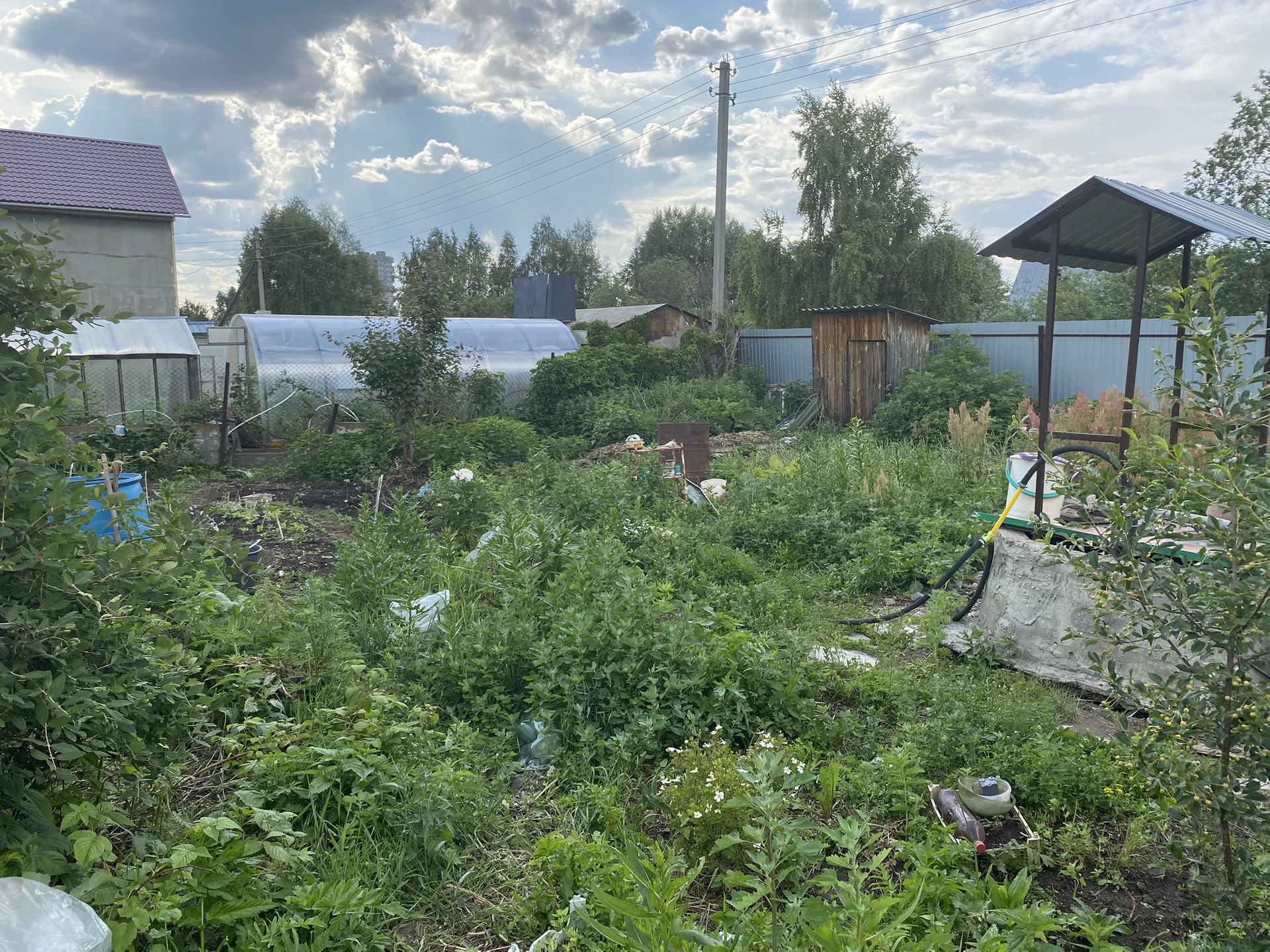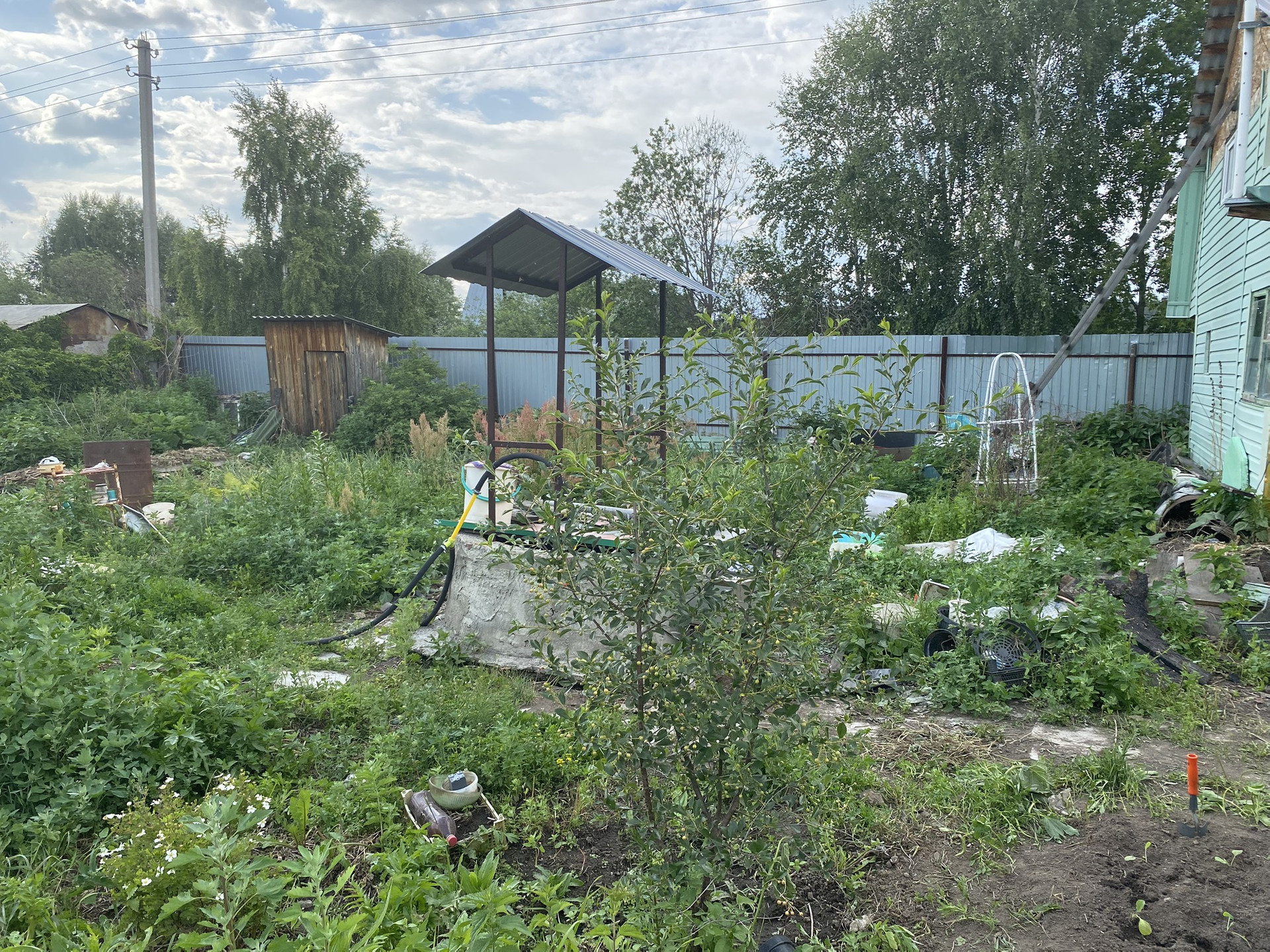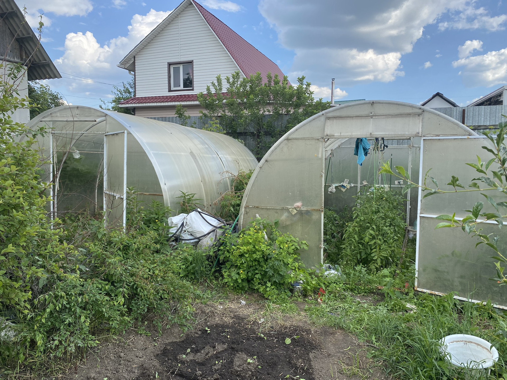 Участок 6,6 соток. На участке есть двухэтажный дом-баня, две теплицы, колодец с питьевой водой, много насаждений, кустарников, плодовых деревьев (яблони, вишня, жимолость).