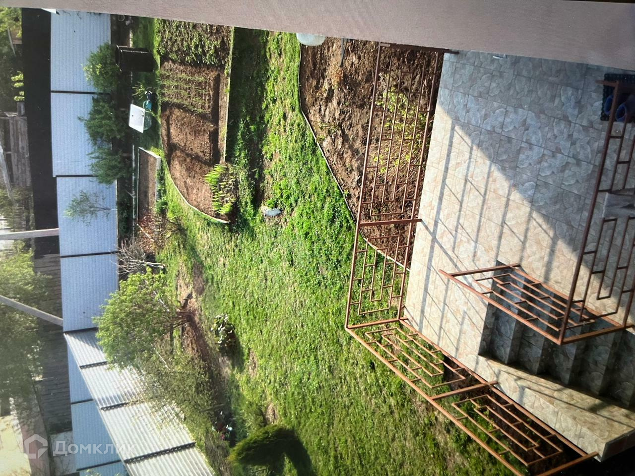 На участке много плодоносящих деревьев и кустарников ( яблони, вишня, малина, смородина) .