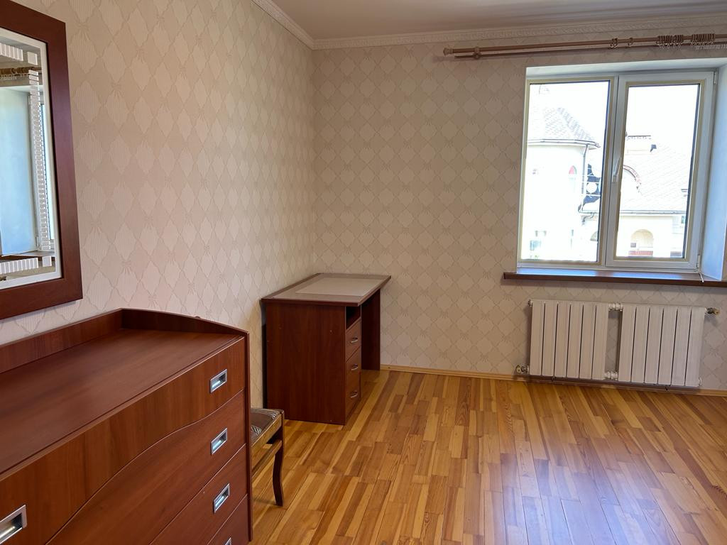 Дом 630 кв.м., первый этаж гостиная, кухня, кладовка, санузел, гардеробные шкафы; 2 этаж : 3 спальни, в холле есть раскладной диван, 2 санузла; 3 этаж: 4 комнаты, санузел;