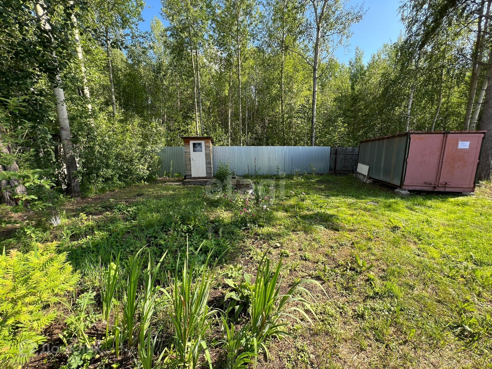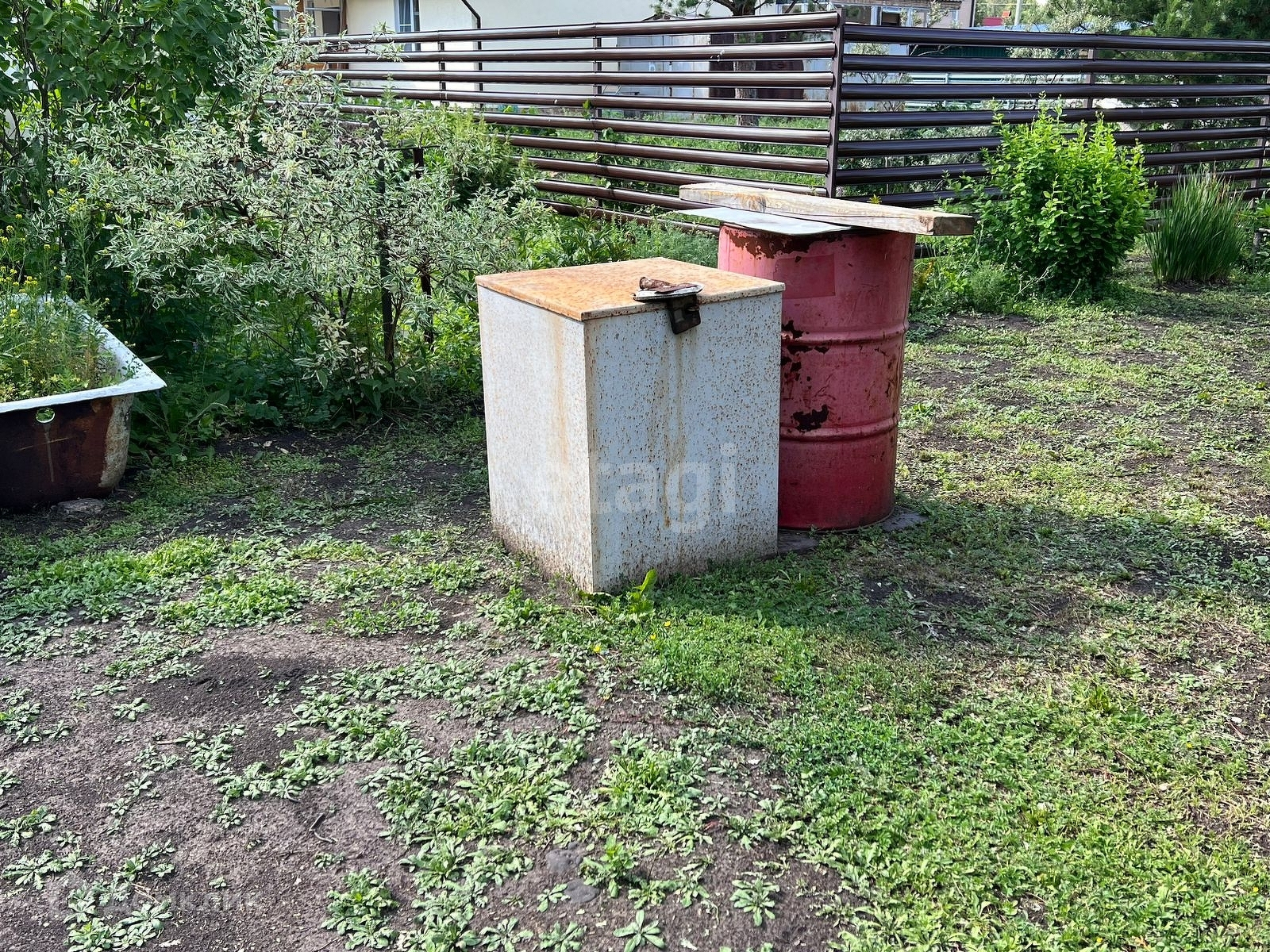 На участке два туалета и металлический контейнер, который используется, как склад.