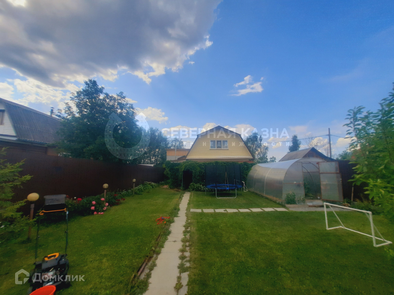 Участок 4,5 соток: есть грядки и теплица, есть лужайка перед домом, где детям можно бегать и резвиться!