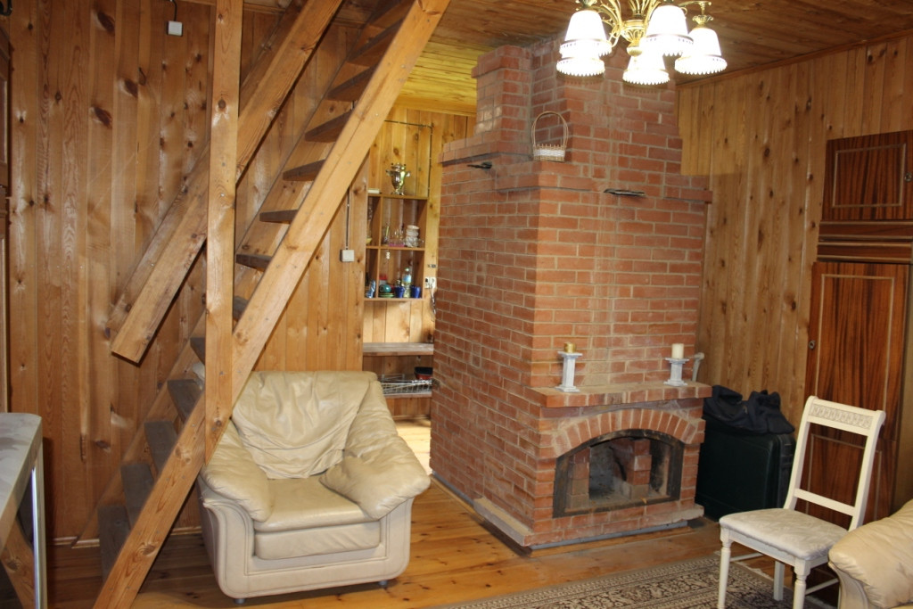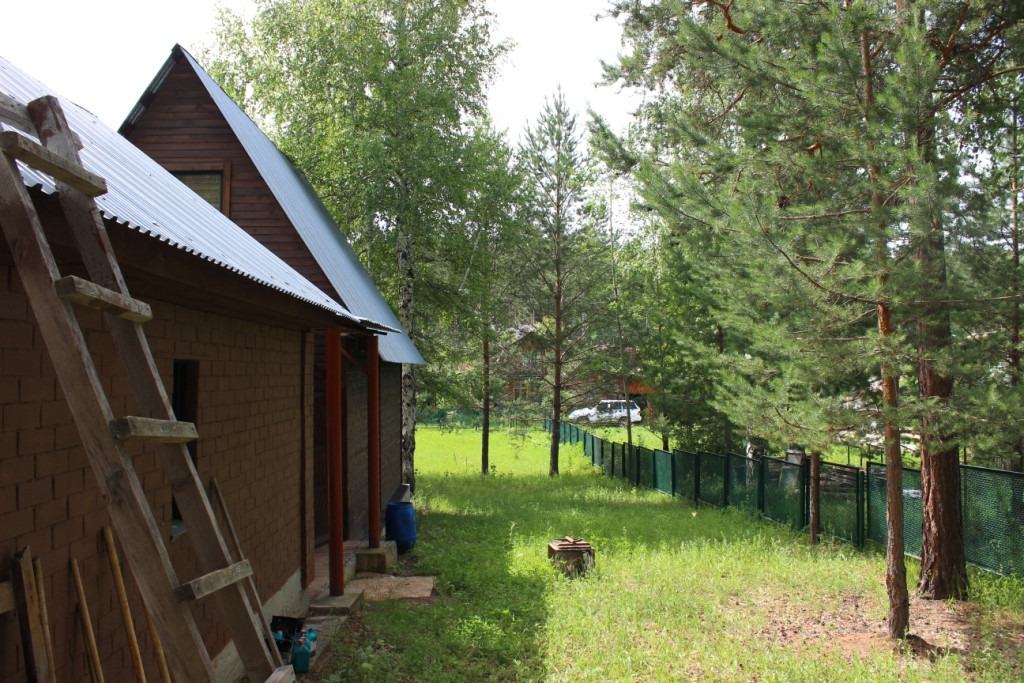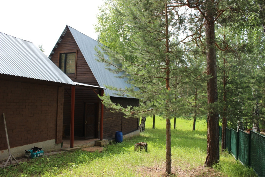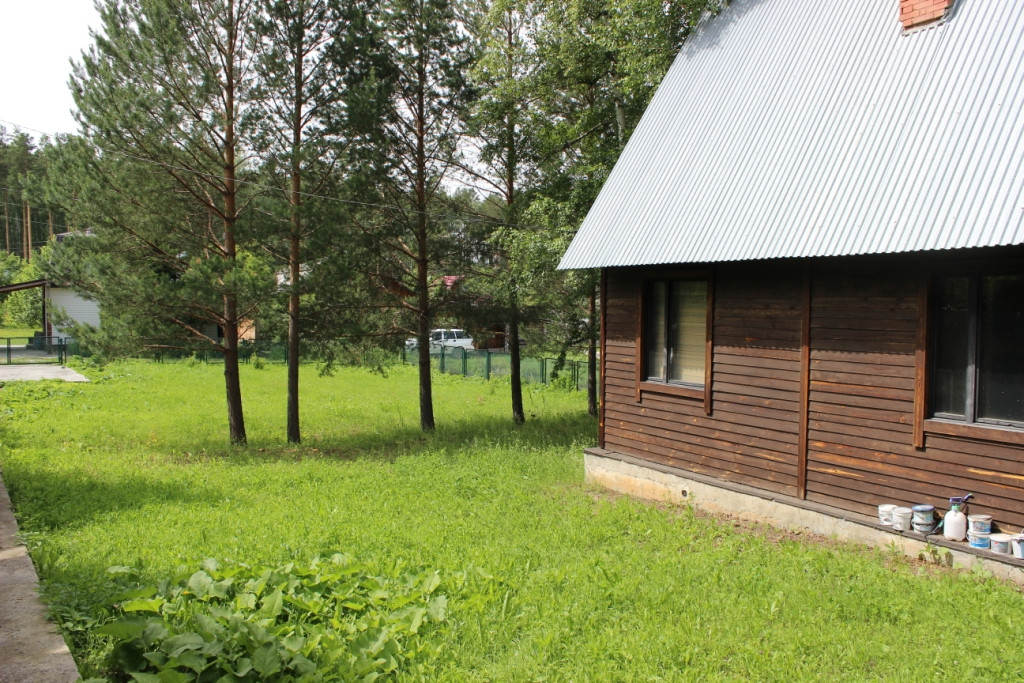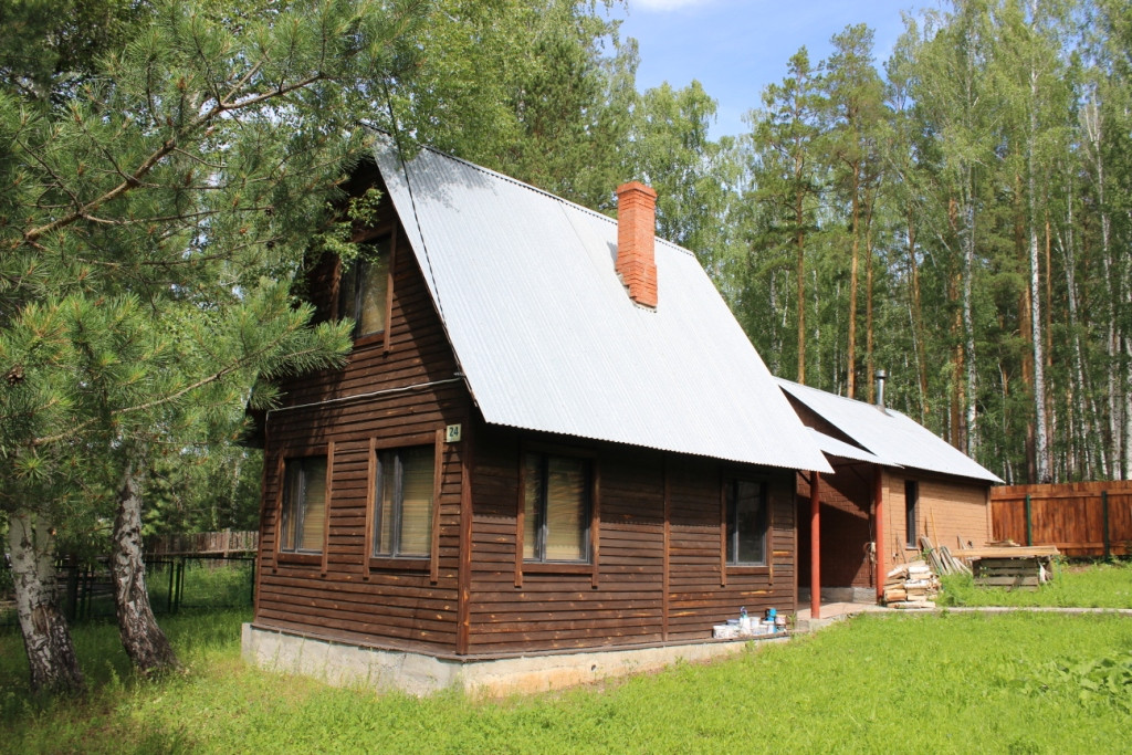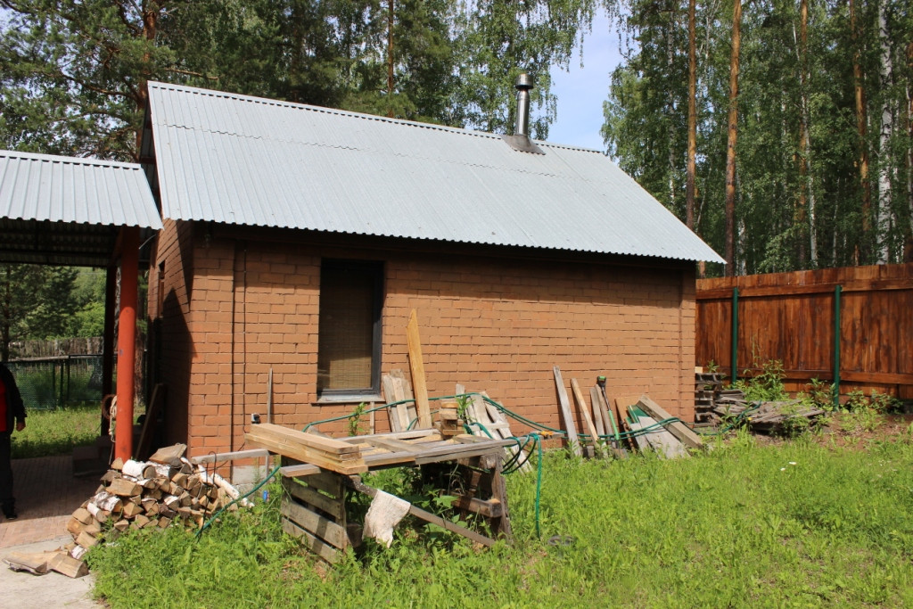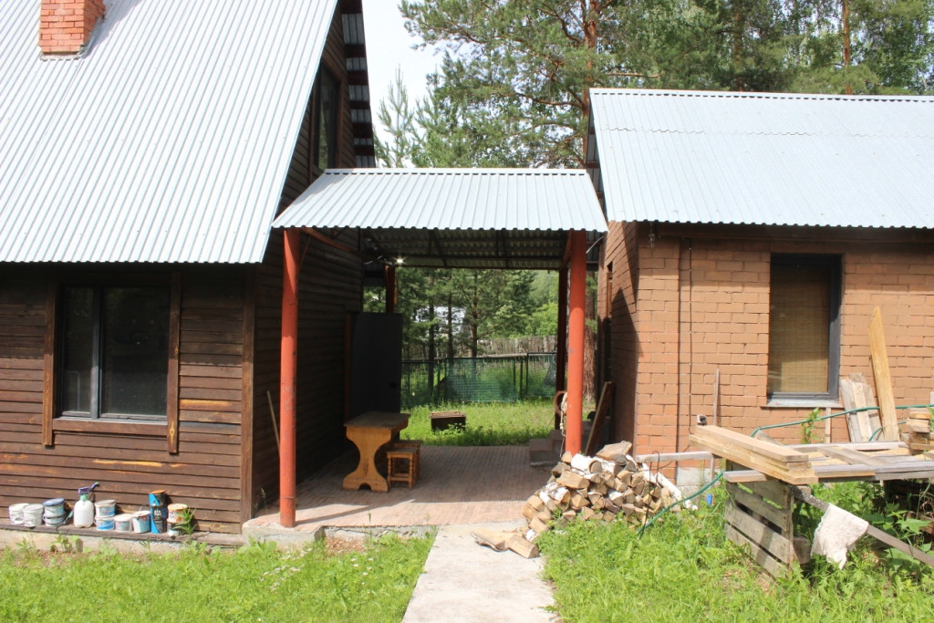 жилой дом в садовом товариществе "Звездный", Екатеринбург, Нижнеисетский район, 2 км. от Рудного. На первом этаже комната с камином и кухня, на втором этаже - спальня. Навес, благоустроенная баня, скважина, канализация - выгреб