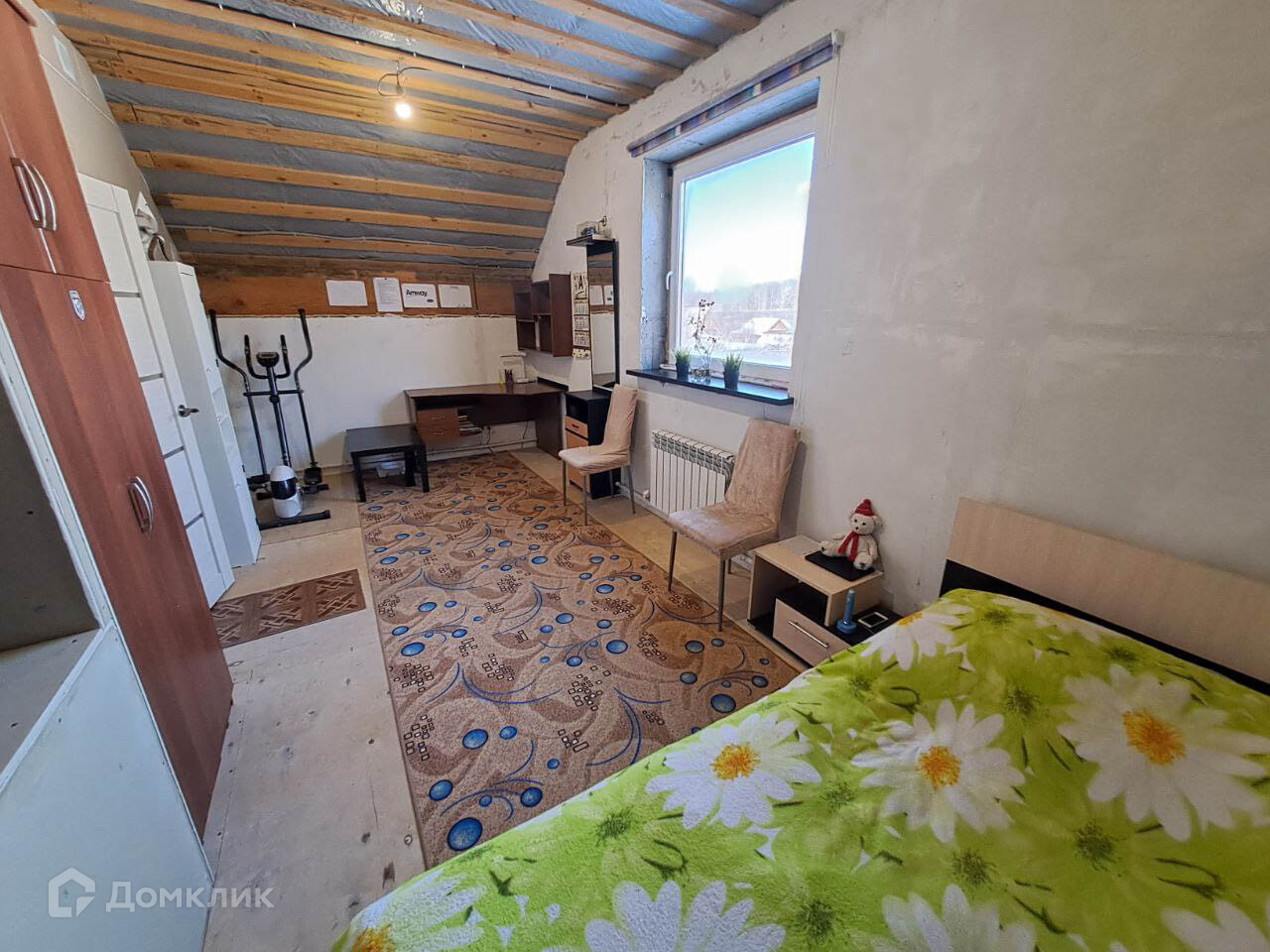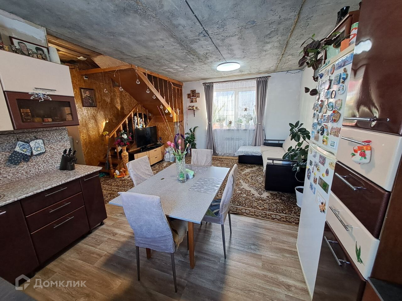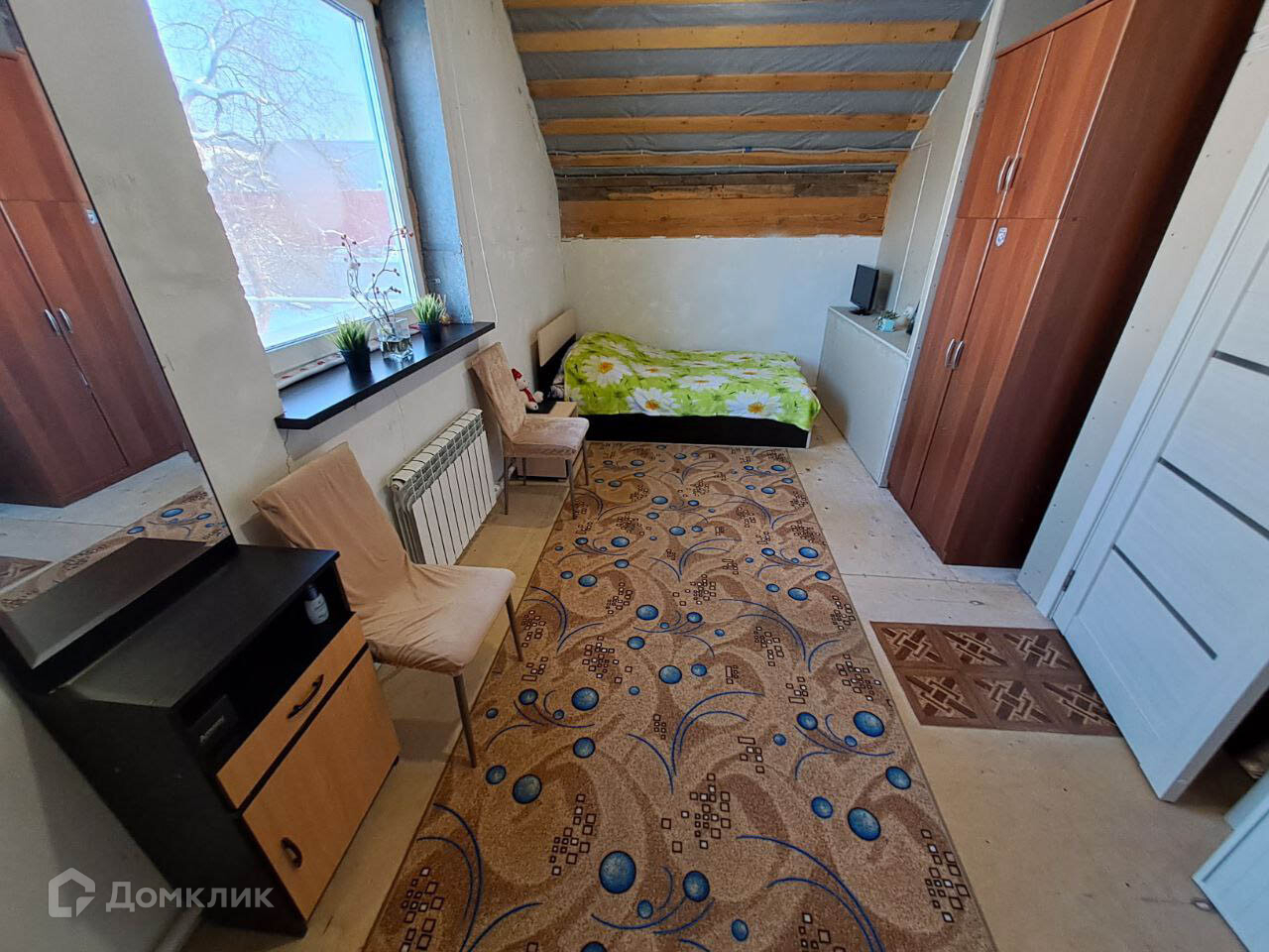 На первом этаже просторная кухня-гостиная, санузел и кладовка.