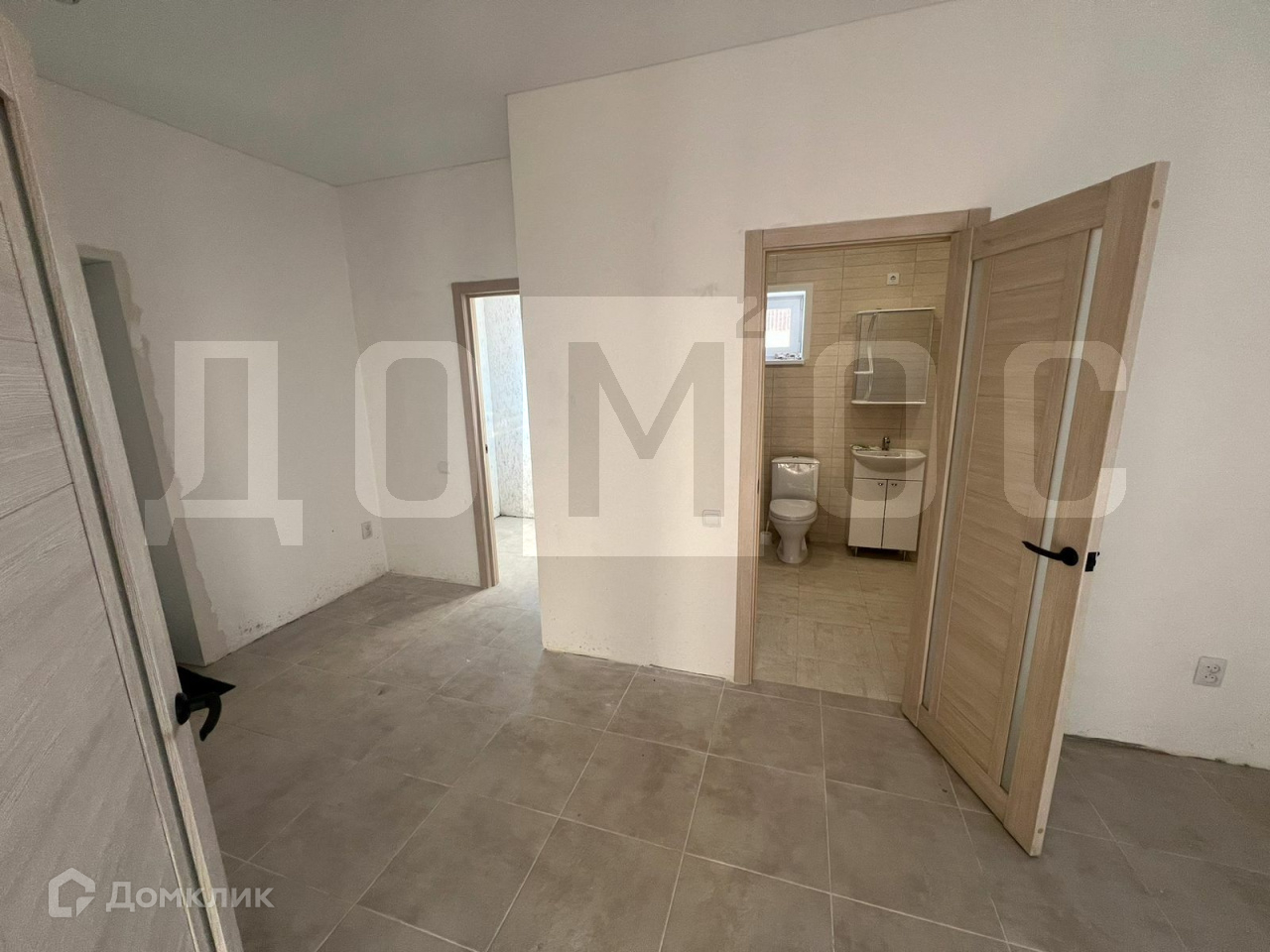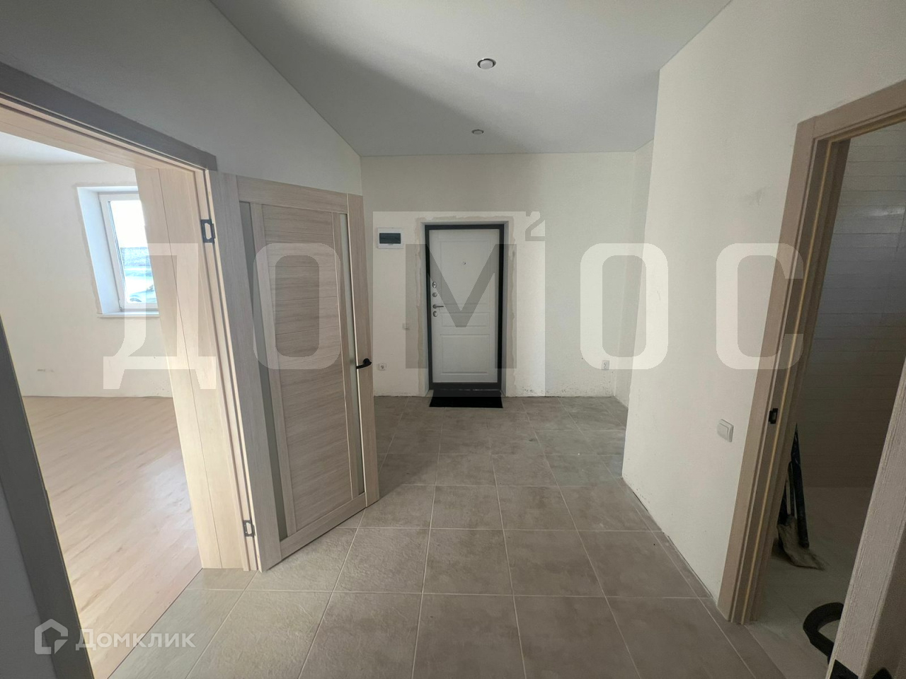 Отделка под чистовую, на полу керамогранит и ламинат, натяжные потолки.