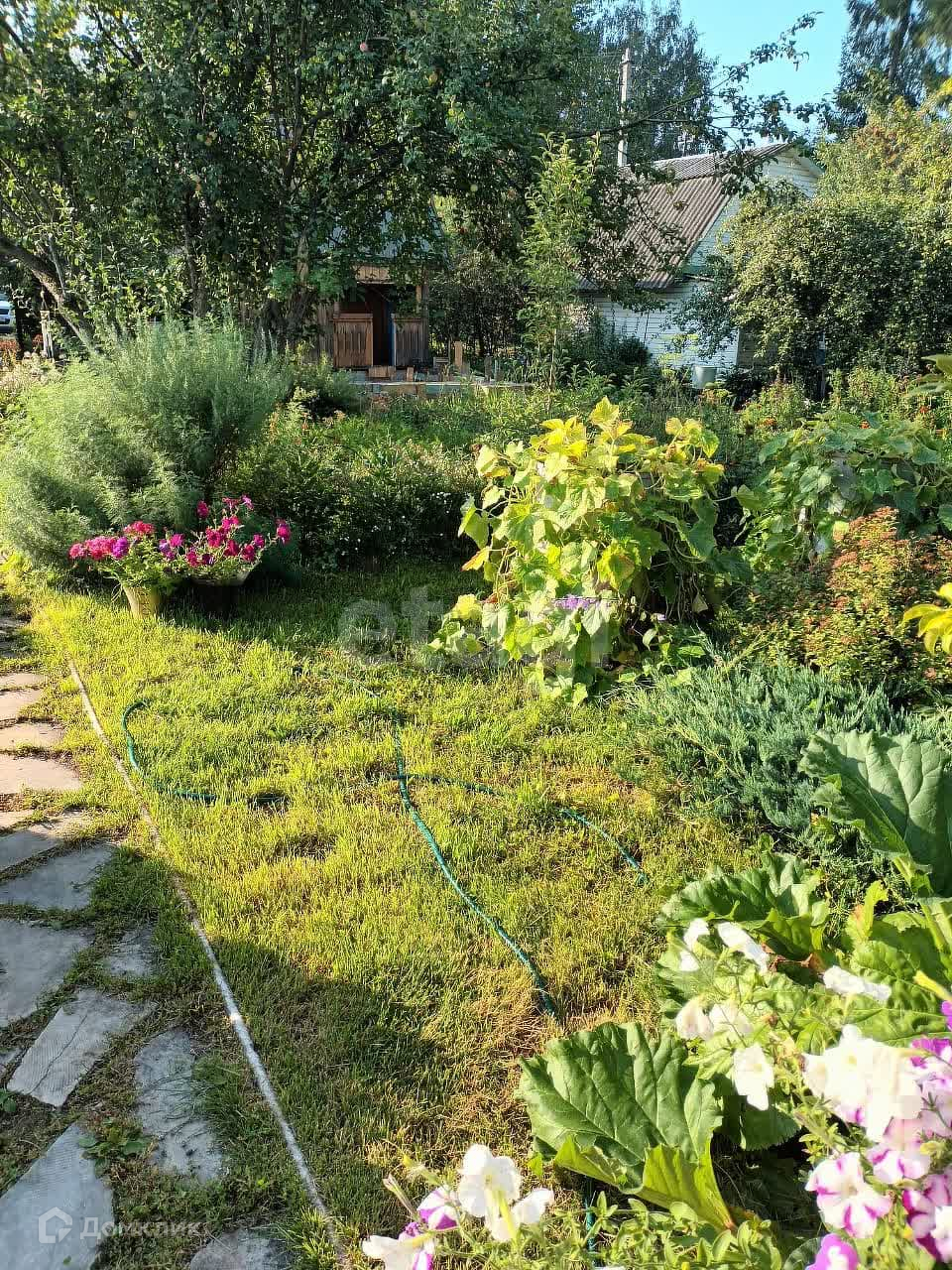 В продаже уютный летний двухэтажный садовый домик.Особый колорит создают растущие на участке ели