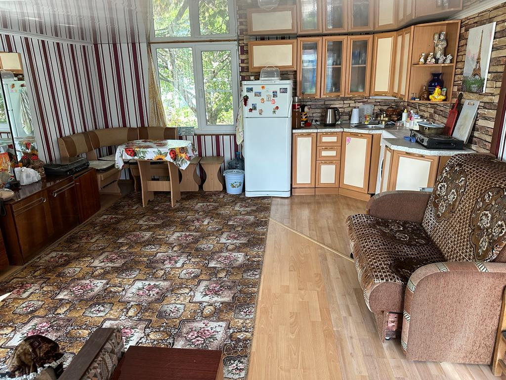 На участке построен летний дом из брус на фундаменте. Проведены работы по утеплению пола, стен, потолка. В 2000 году дом расширили за счет нового пристроя, сделали веранду. Дом отапливается печкой, и электрообогревателями, состоит из двух комнат и кухни. Вода - скважина, есть горячая вода в доме. Санузел также расположен в доме, канализация - выгребная яма.
