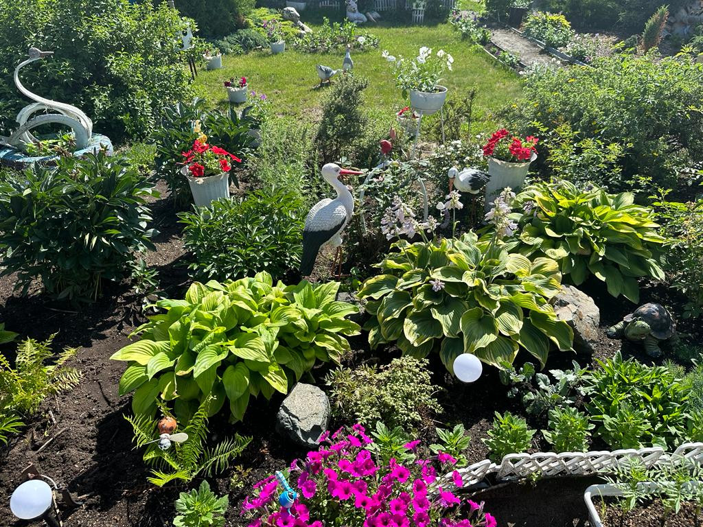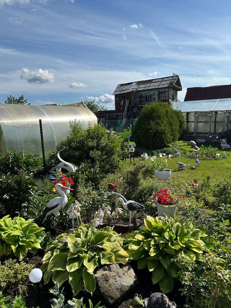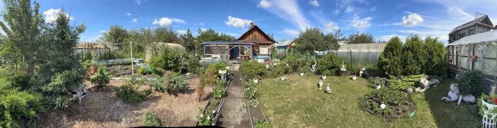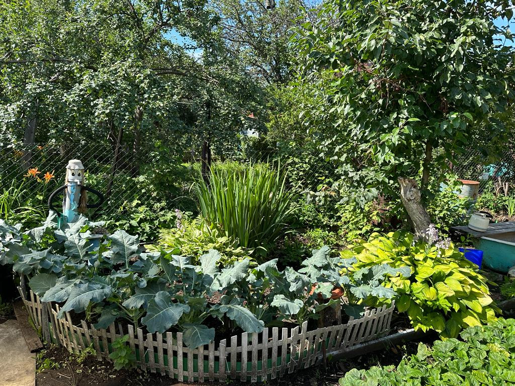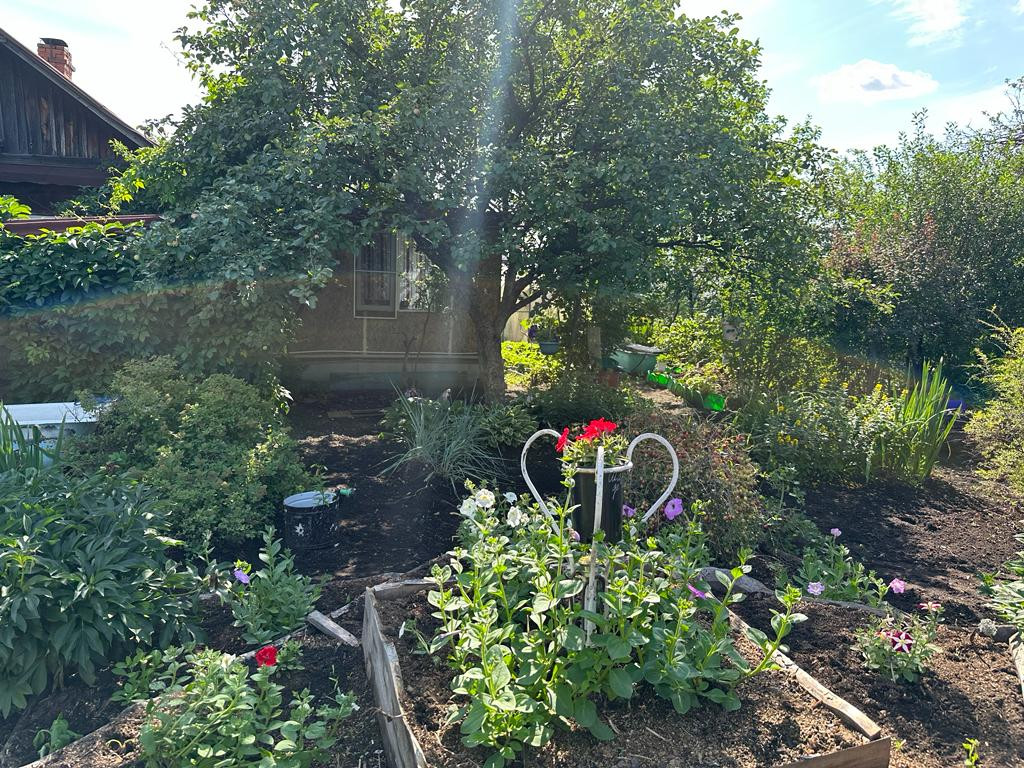 На участке много насаждений. Растет яблоня, а также плодово-ягодные кустарники: смородина, вишня, облепиха, малина, слива, крыжовник.