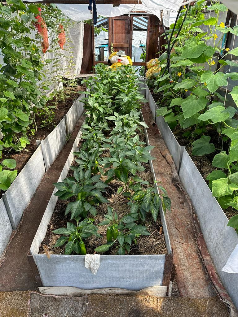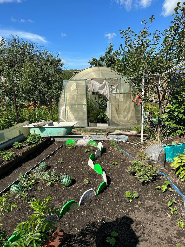 Для выращивания овощей - 2 теплицы ( 1 теплица с рамным остекленением; 2 металлический каркас, покрытый поликарбонатом).