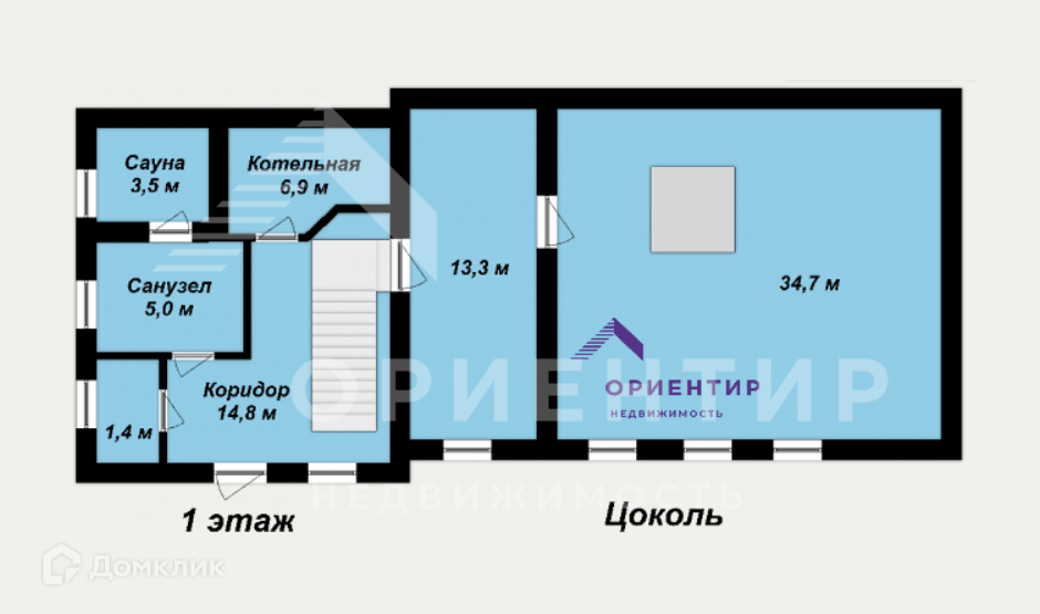 На 1 этаже расположена Котельная, Санузел, Сауна.