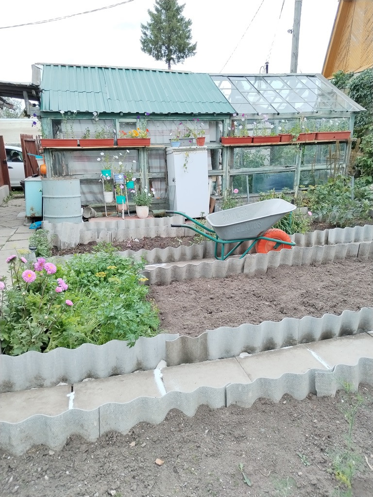 Участок полностью разработанный. Есть многолетние насаждения: 5 плодоносящих яблонь разных сортов, крыжовник, смородина, ирга, малина, 2 куста вишни, жимолость, многолетние цветы, виктория.