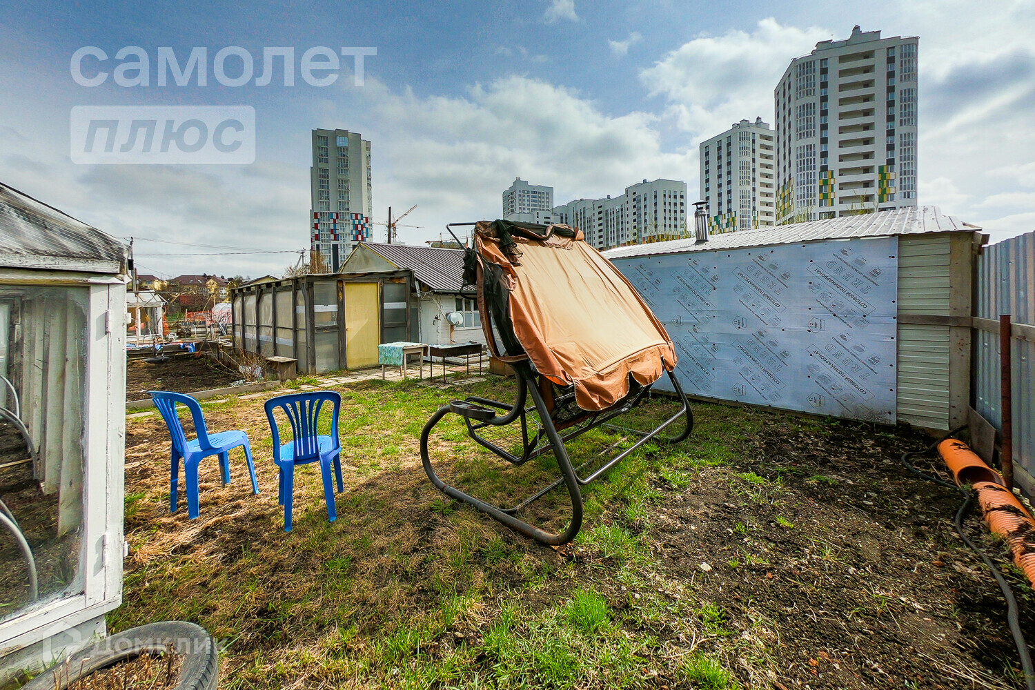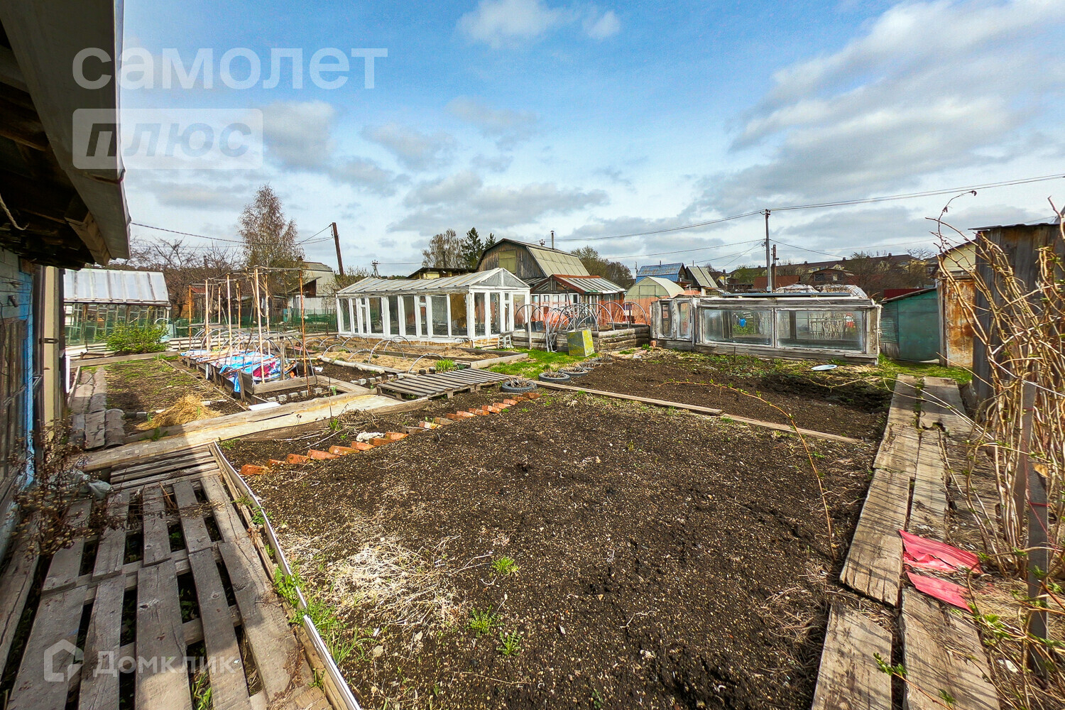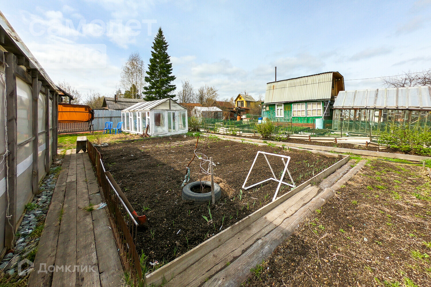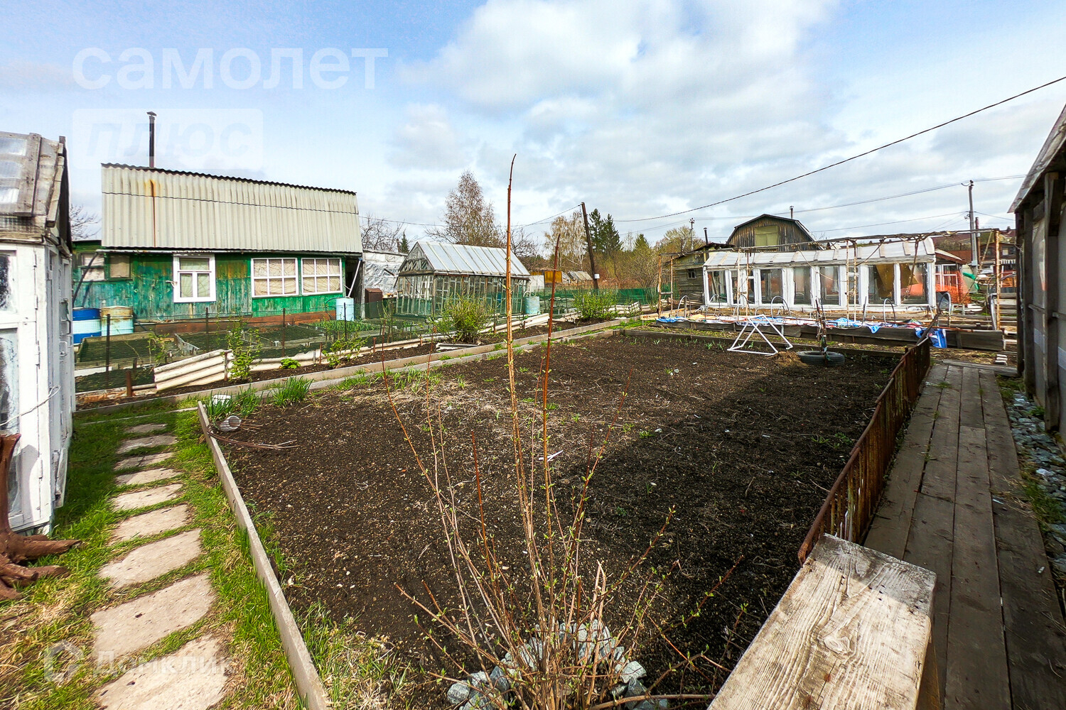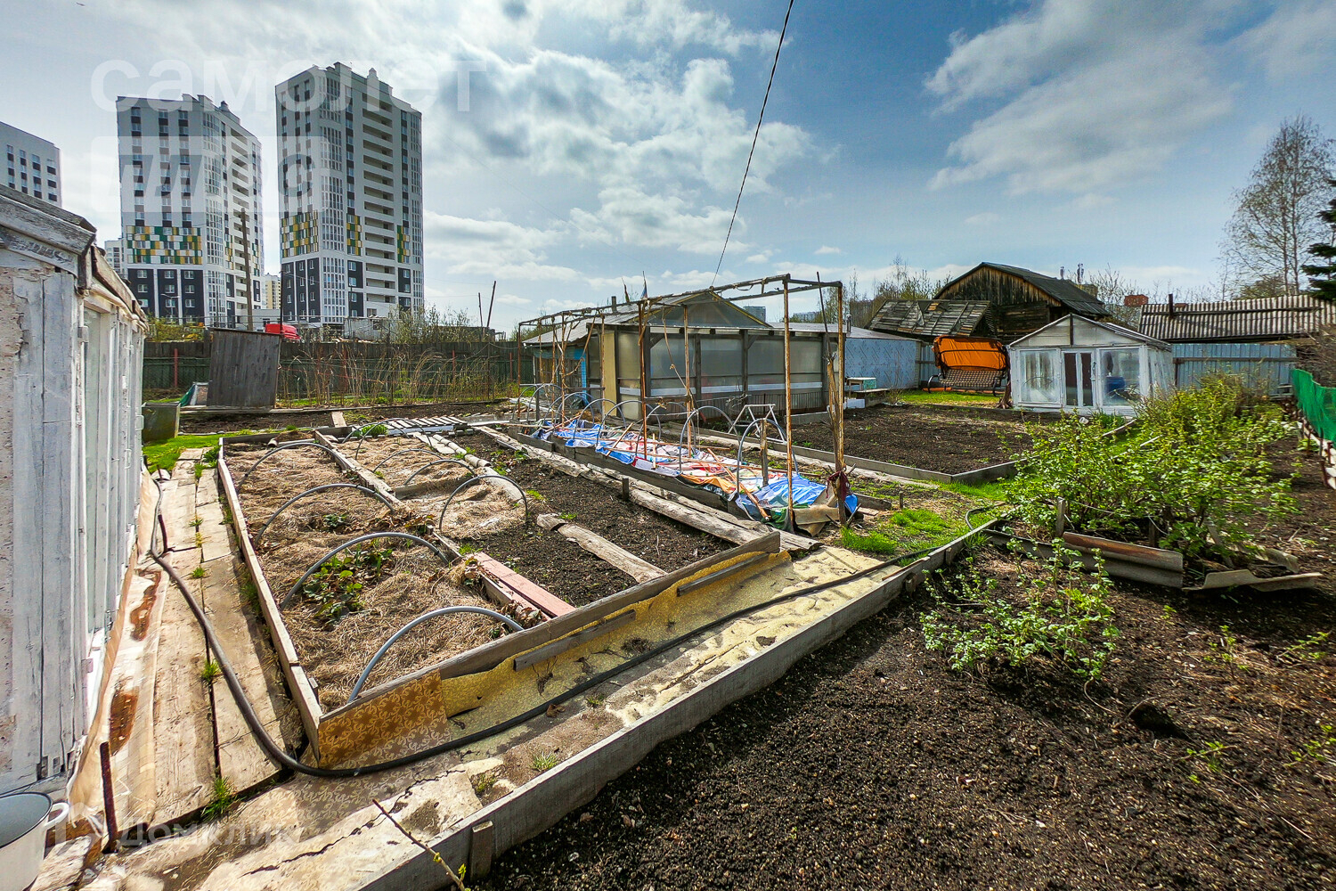 - место для посадок, 2 теплицы, плодоносящие деревья (смородина, яблоня) ВИНОГРАД!!!