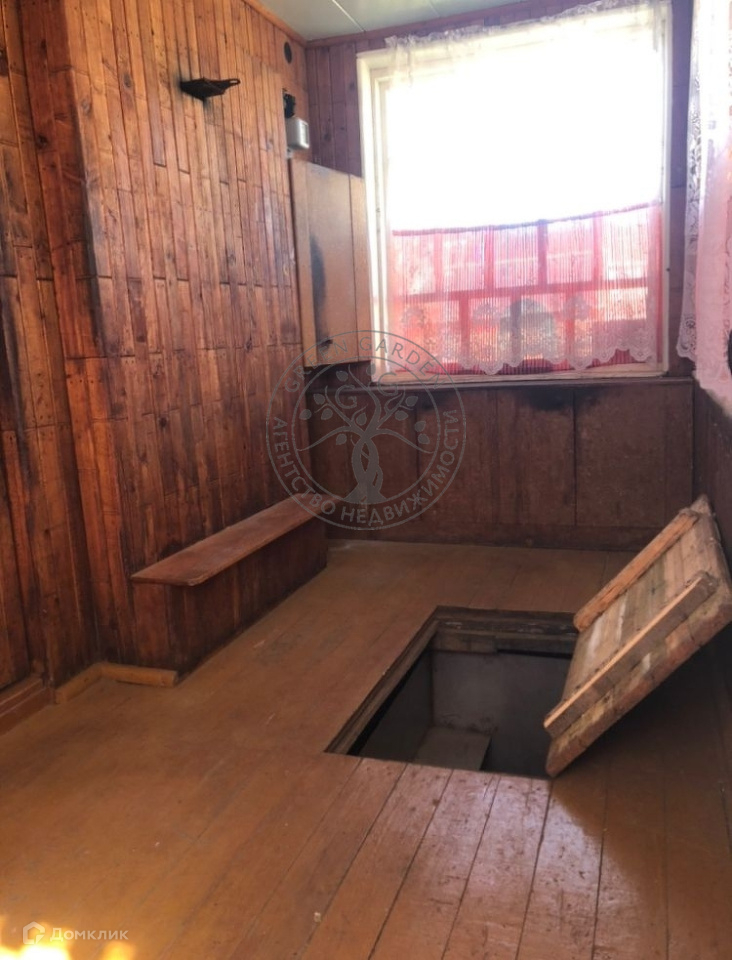 В доме на первом этаже комната и кухня-веранда с большим остеклением и лестницей на второй этаж. На веранде в полу небольшой герметичный погреб из нержавейки 1,5х1х1,2м. В комнате установлен камин, обложенный камнем.