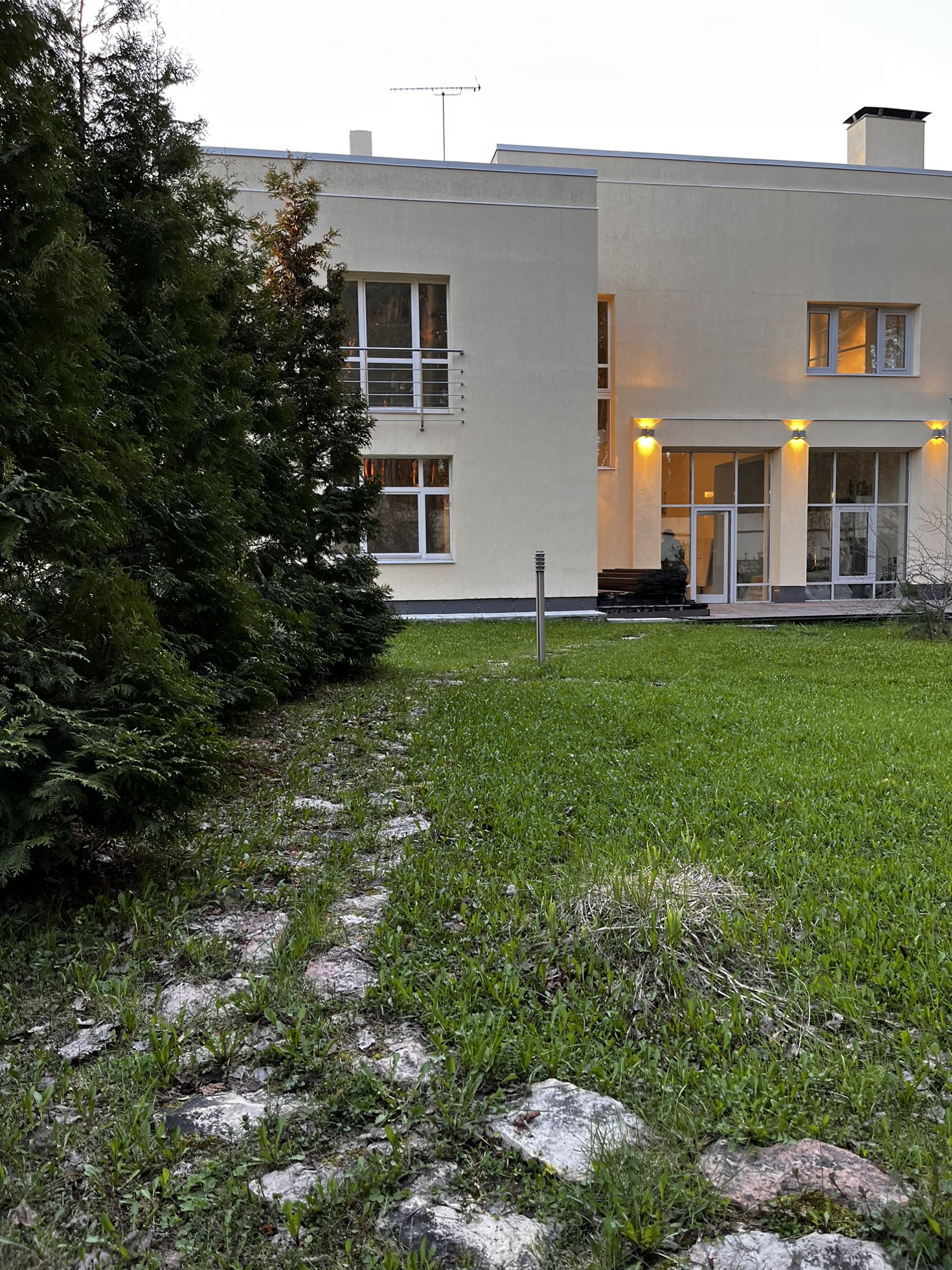 Новый фасад дома с архитектурной подсветкой по всему периметру дома.
