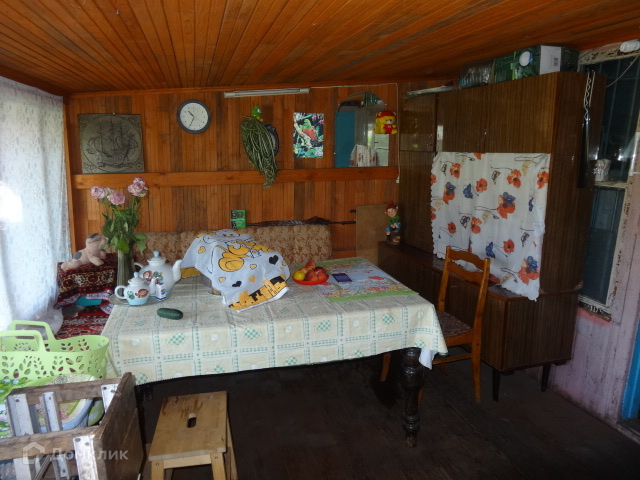- первый этаж занимает дом 5*4, из бруса, с печным отоплением,
