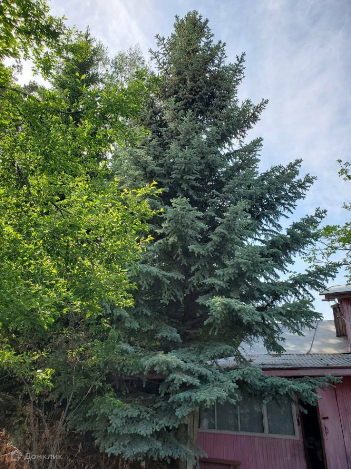 - перед домом растет красивая вековая ель