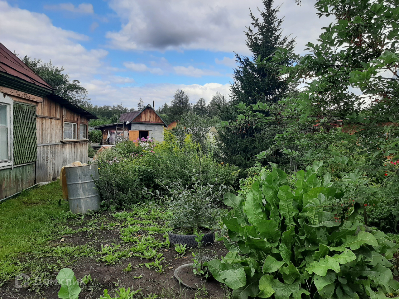 На участке имеется новая баня с предбанником из пеноблока с хорошей железной печкой, обитая внутри вагонкой;