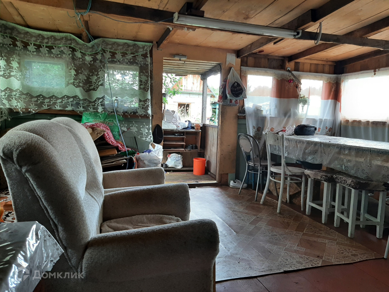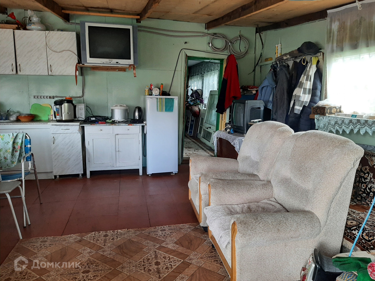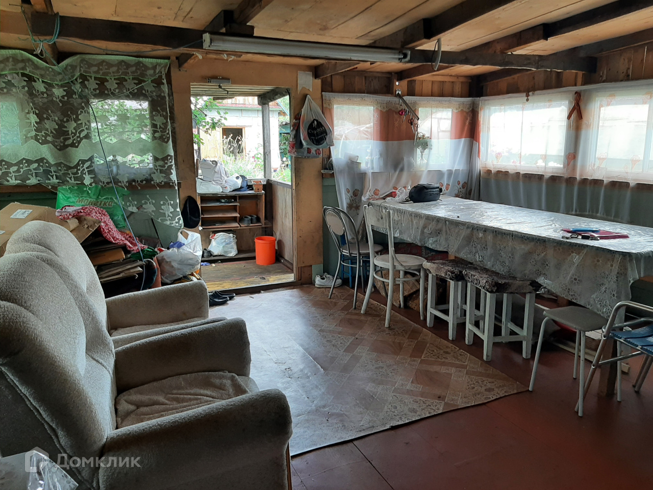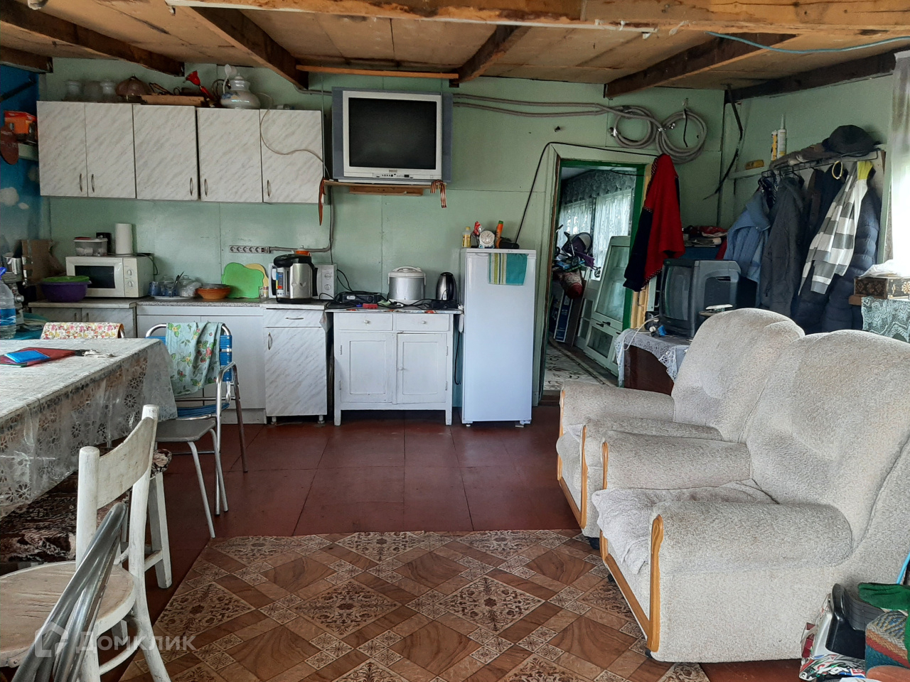 В подарок покупателю останется все, что есть в доме и на участке: мягкая мебель ( 4 дивана, 2 кресла), шкафы, стулья, 2 телевизора, ковры, микроволновка, доски, вагонка для ремонта, садовый инвентарь.