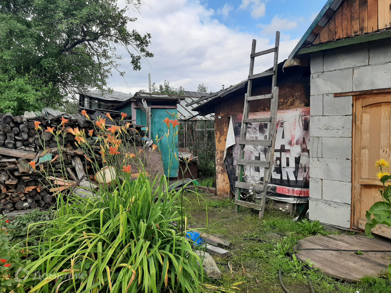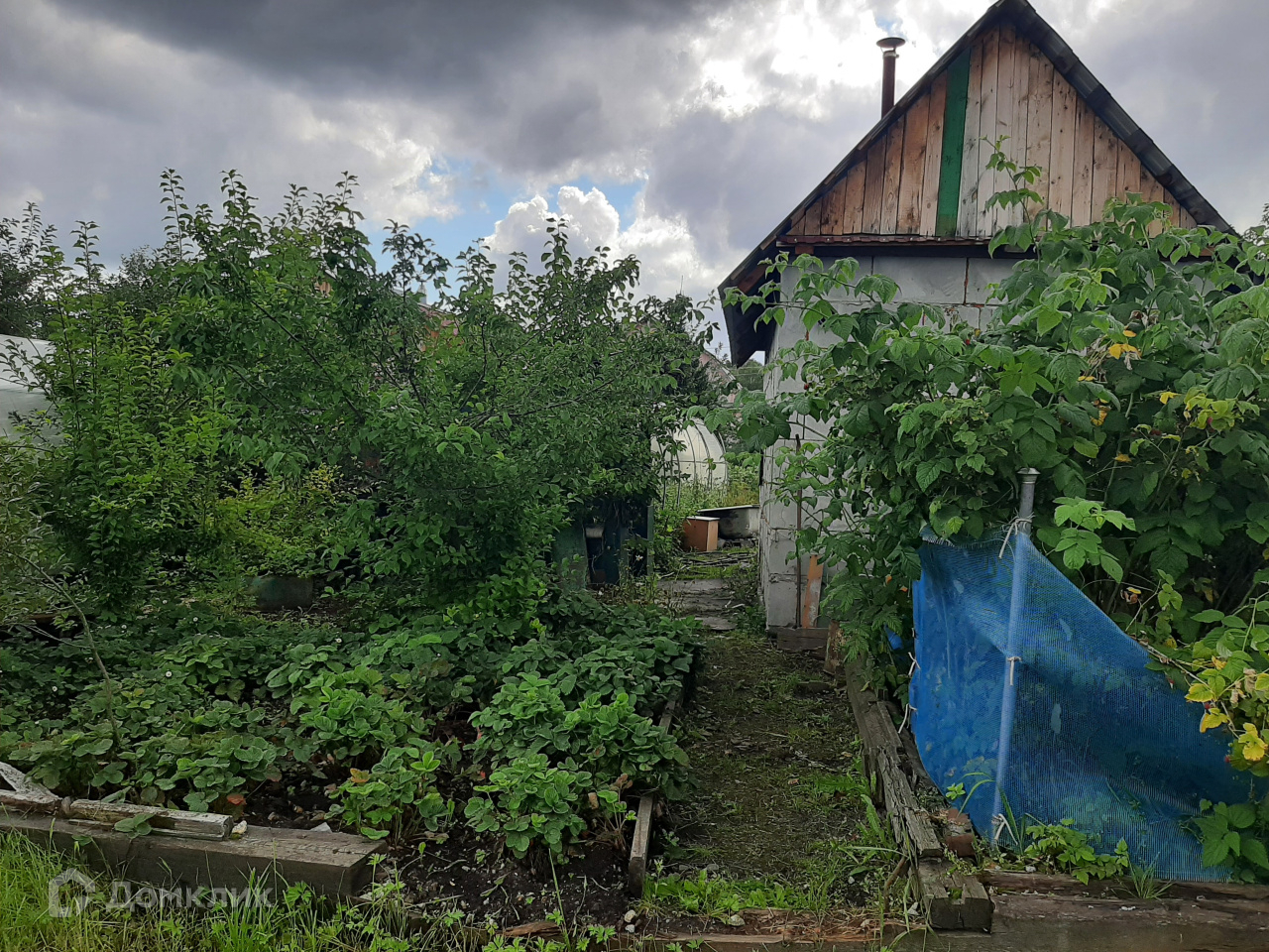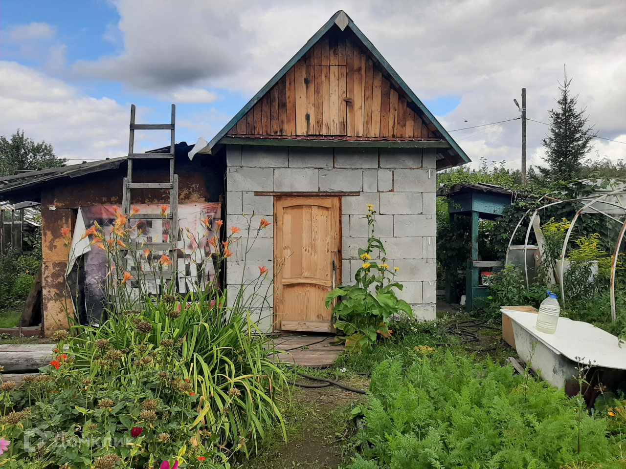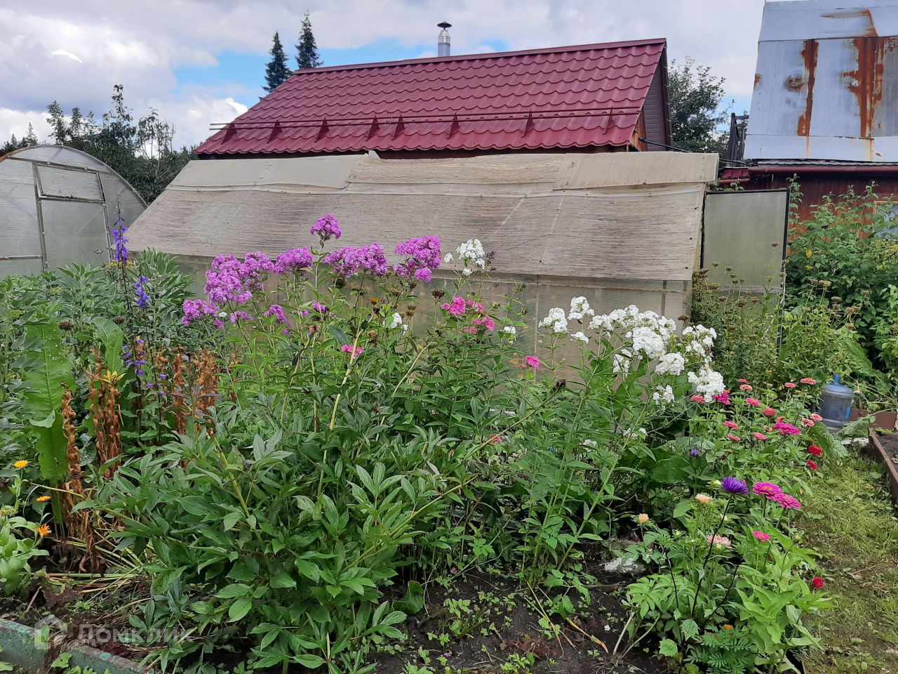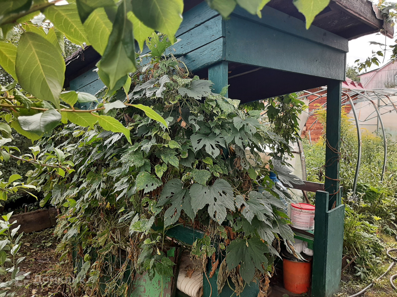 Теплица из поликарбоната, сарай, туалет, небольшая беседка, колодец для полива, питьевая вода недалеко от домика.