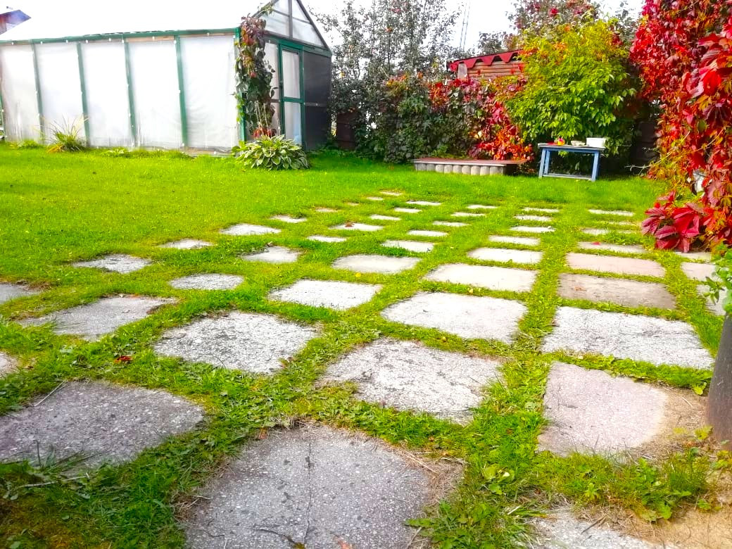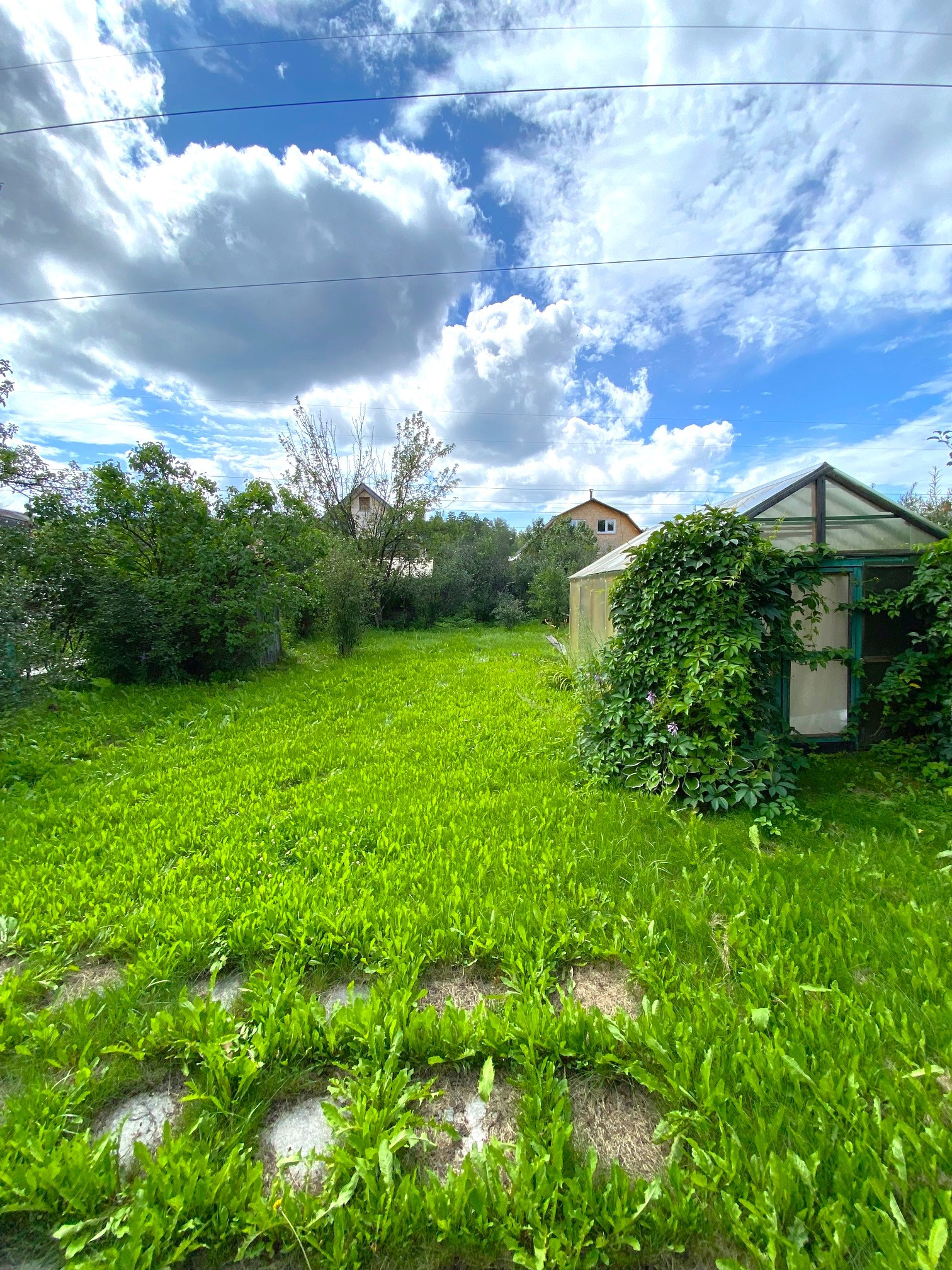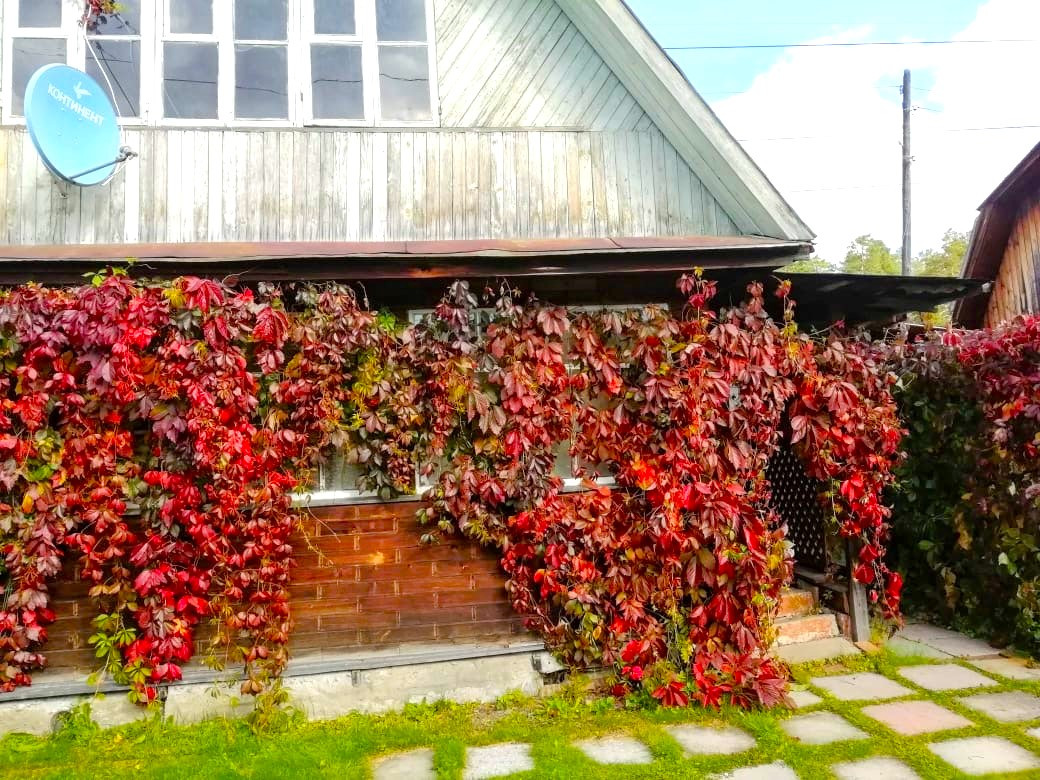 Посажены вишня, яблоня, чернослив, дикий виноград.