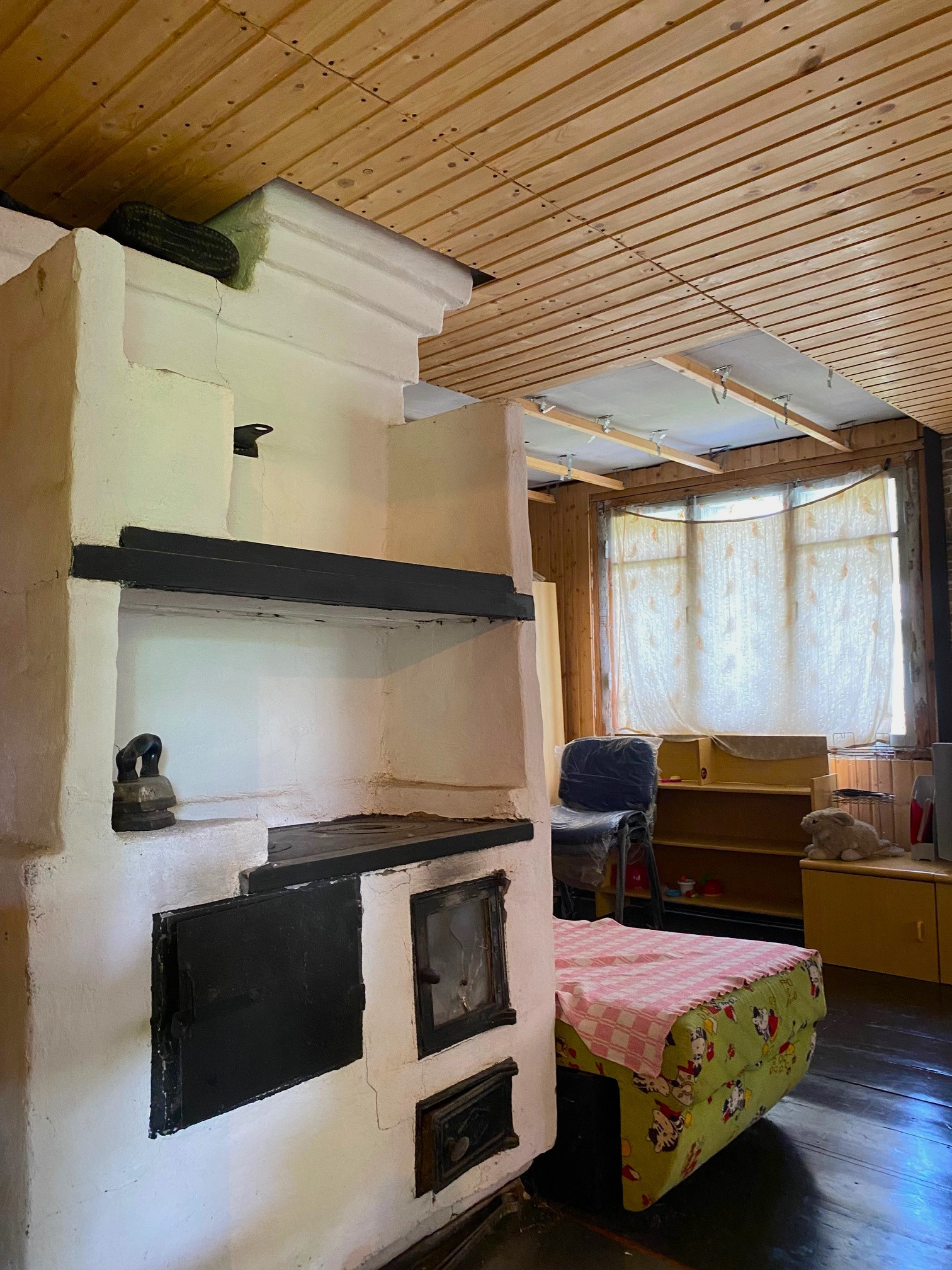 Большая кирпичная печь, долго держит тепло. Электричество 15 кВт.