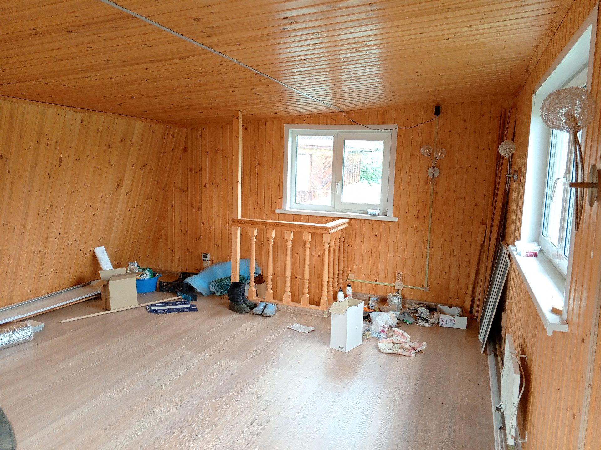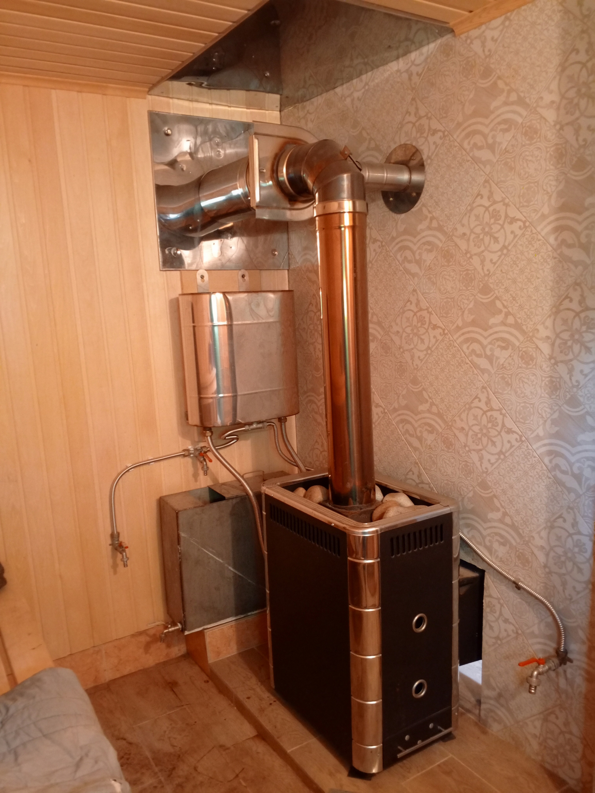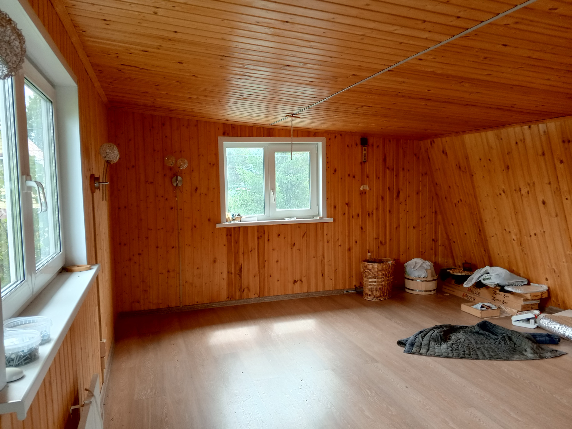 Двухэтажное здание, общей площадью 35 кв.м., где на первом этаже новенькая, еще ни разу неиспользованная баня с шикарной печкой, предбанником и зоной для отдыха; а на втором просторное жилое помещение в 20 кв.м. с теплым полом.