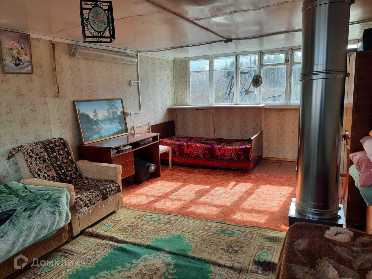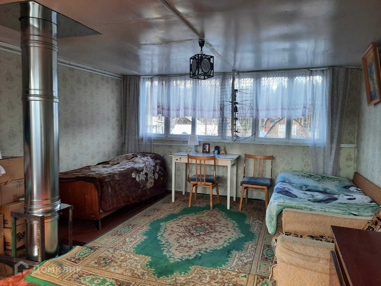 Сам дом сделан из добротного бруса, с печью-камином, мансардой и погребом.