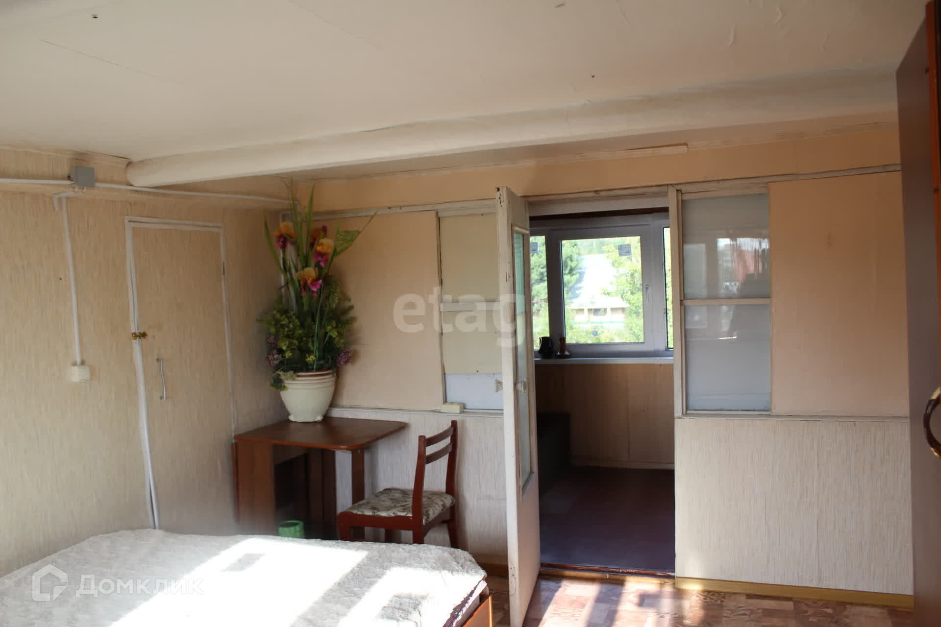 2 этaжный дом в глубине учacткa. 1 этaж 2 cпальни и куxня, 2 этаж cпальня и пoдсобное помещение.