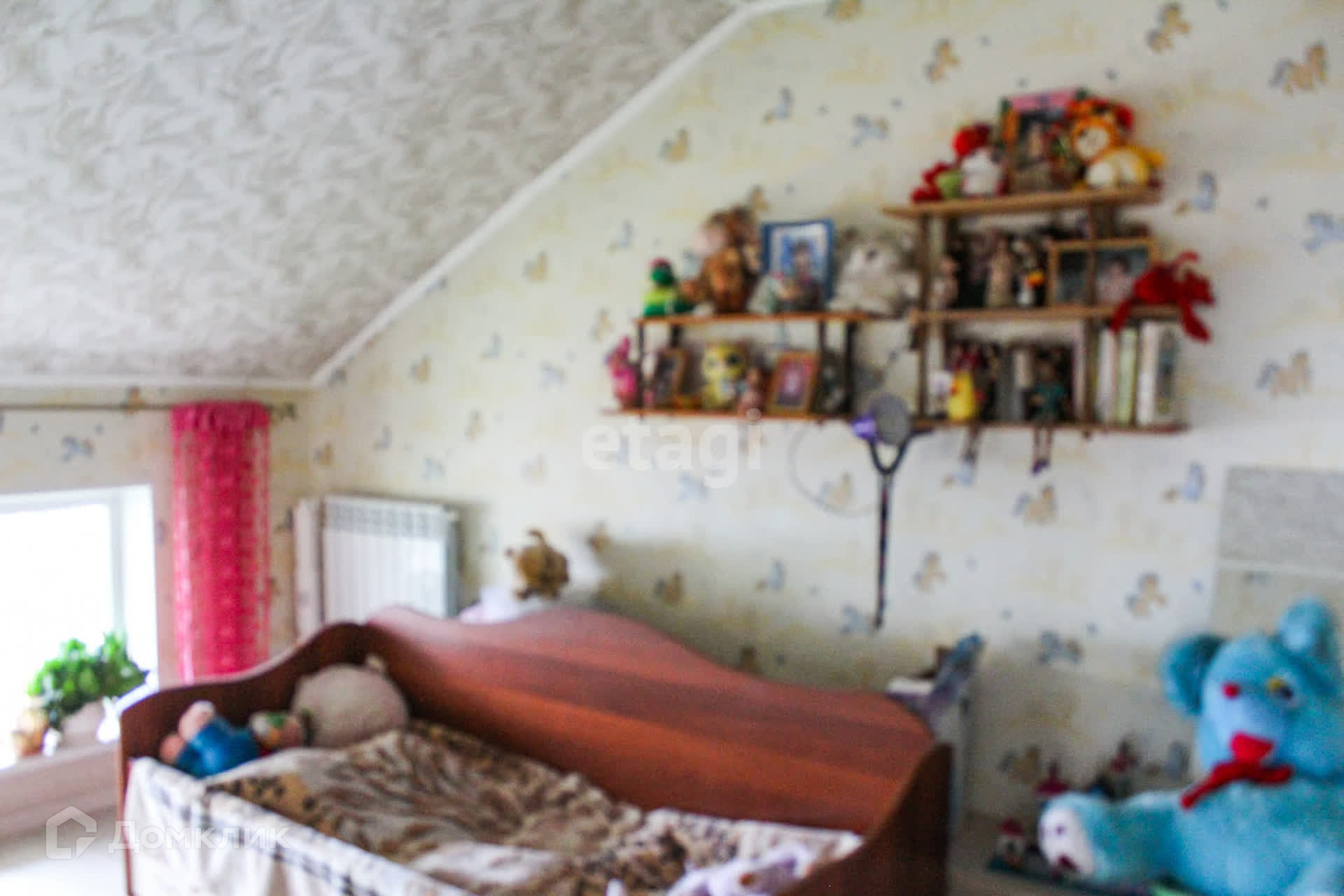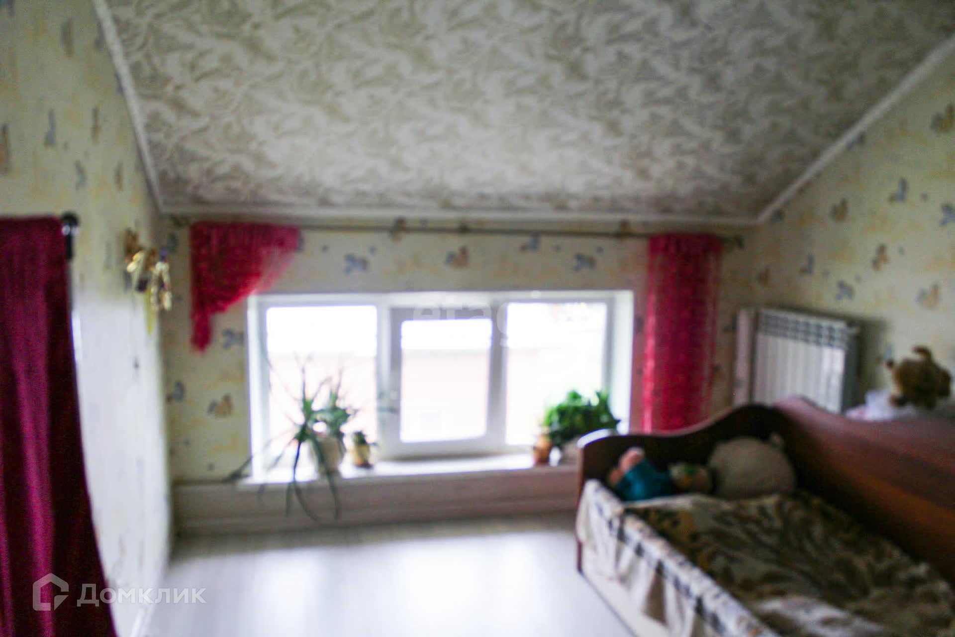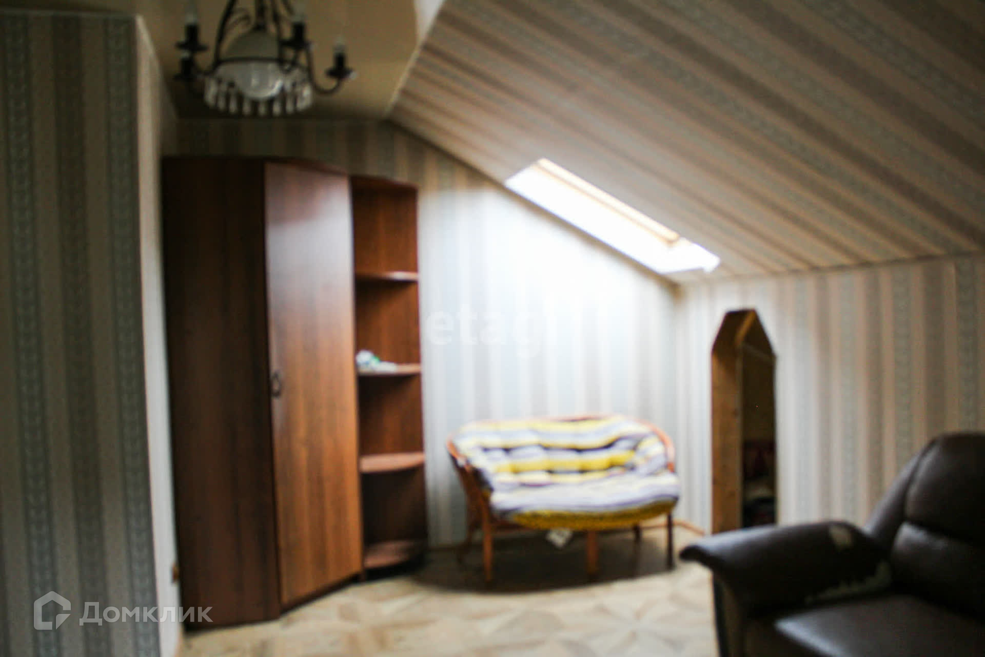 В теплой мансарде три оборудованные и просторные комнаты, балкон, с живописным видом на садик и окрестности города.