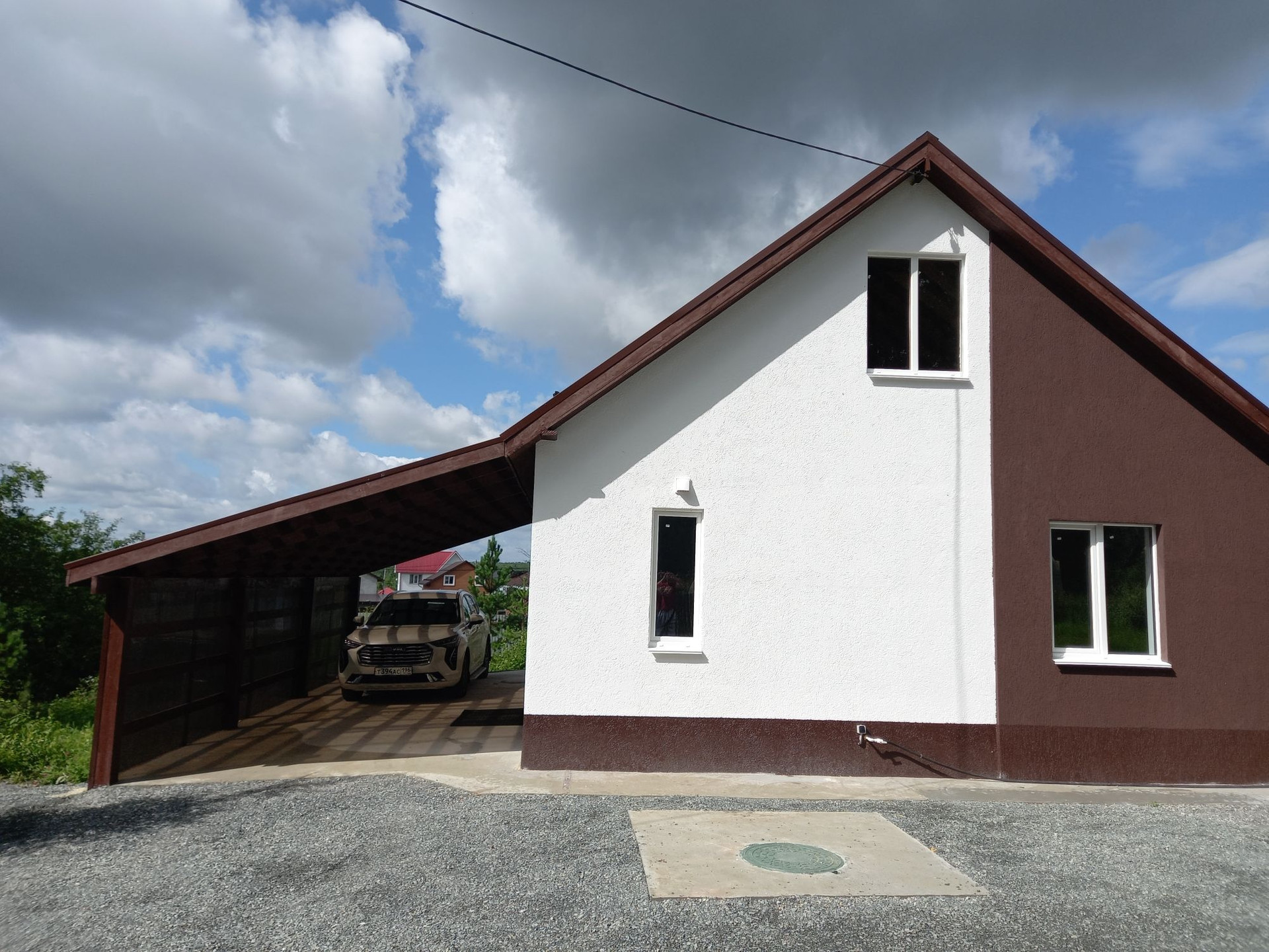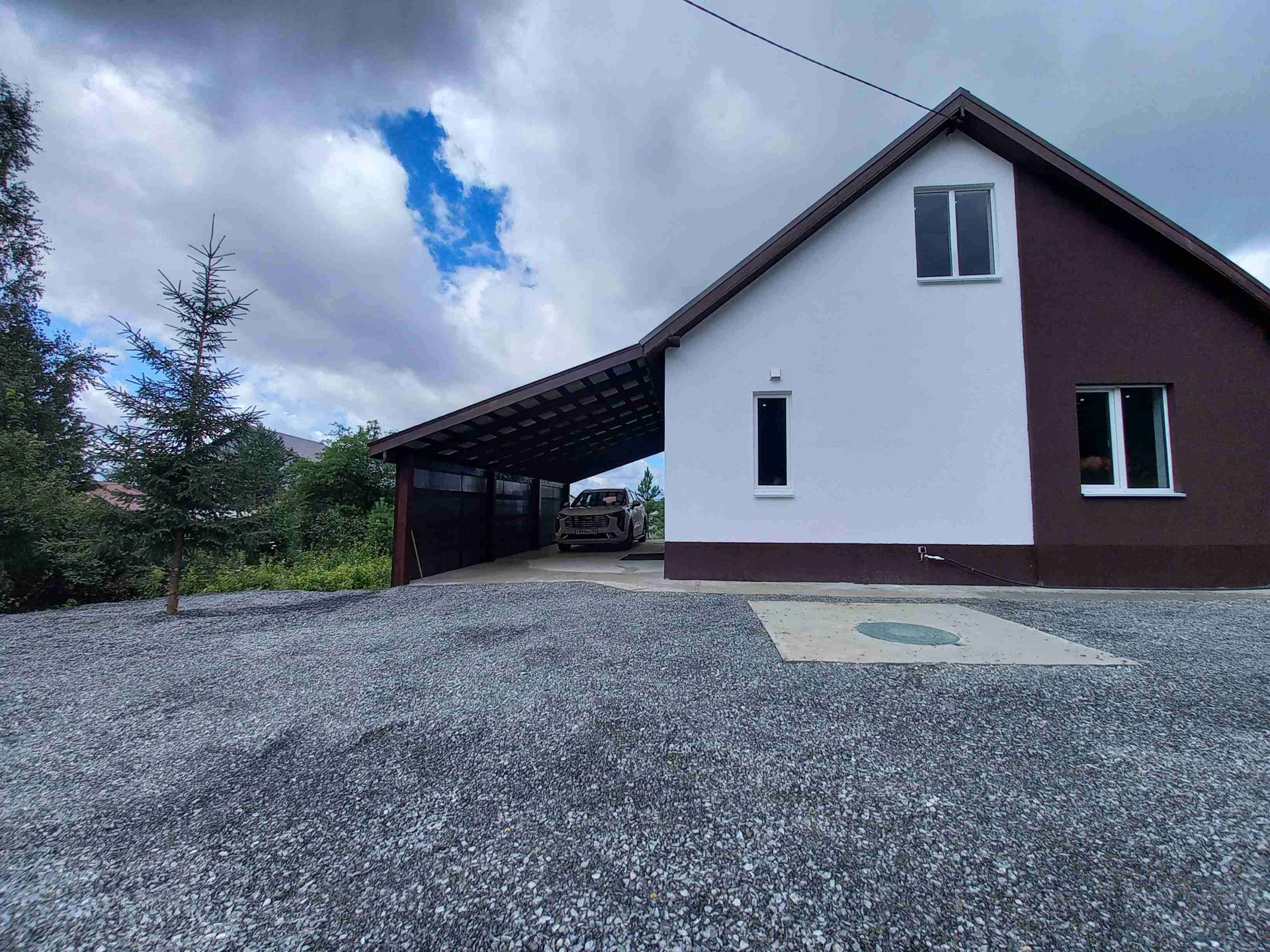 Навес для двух машин у дома, рядом места для машин Ваших гостей.