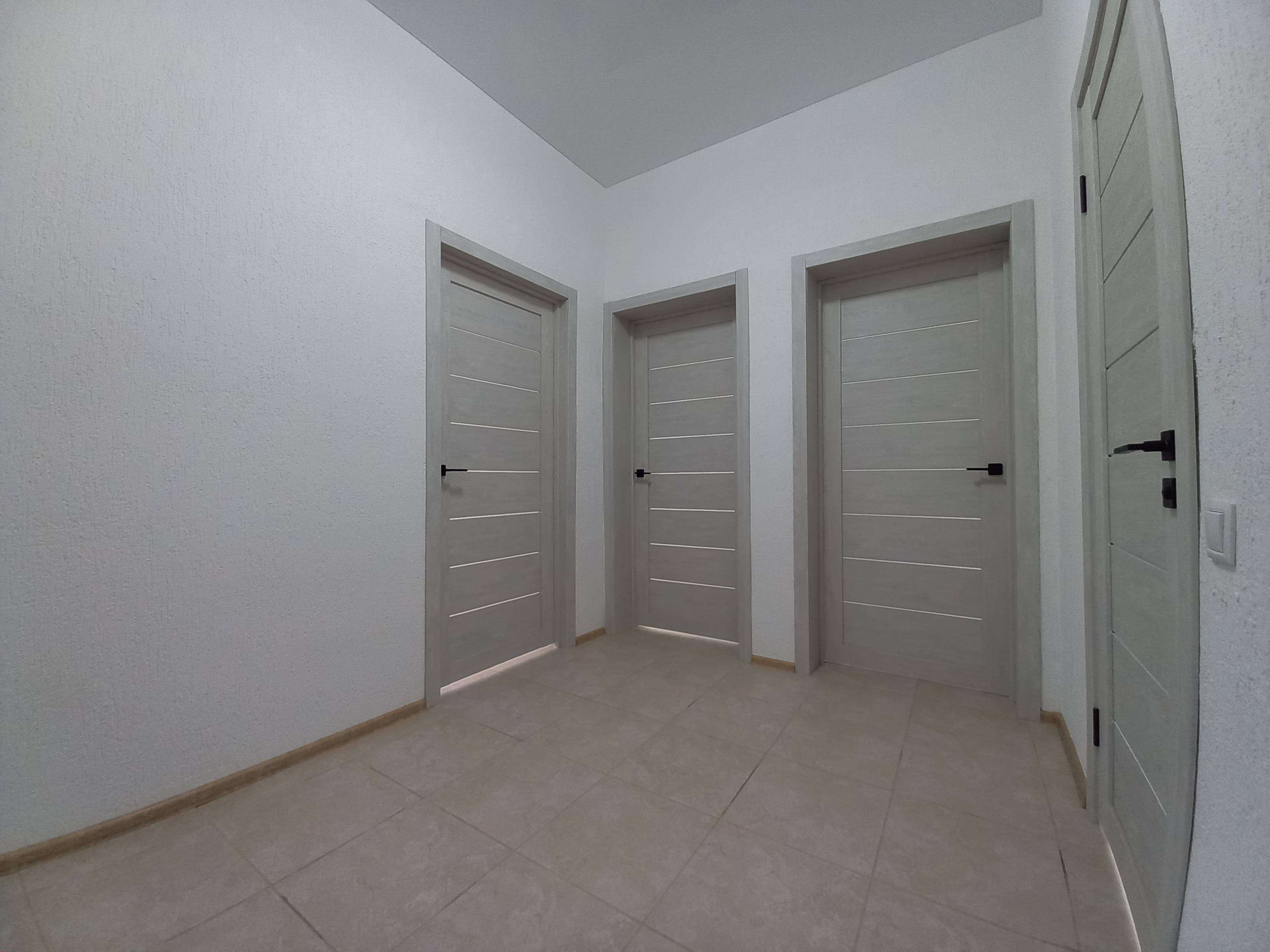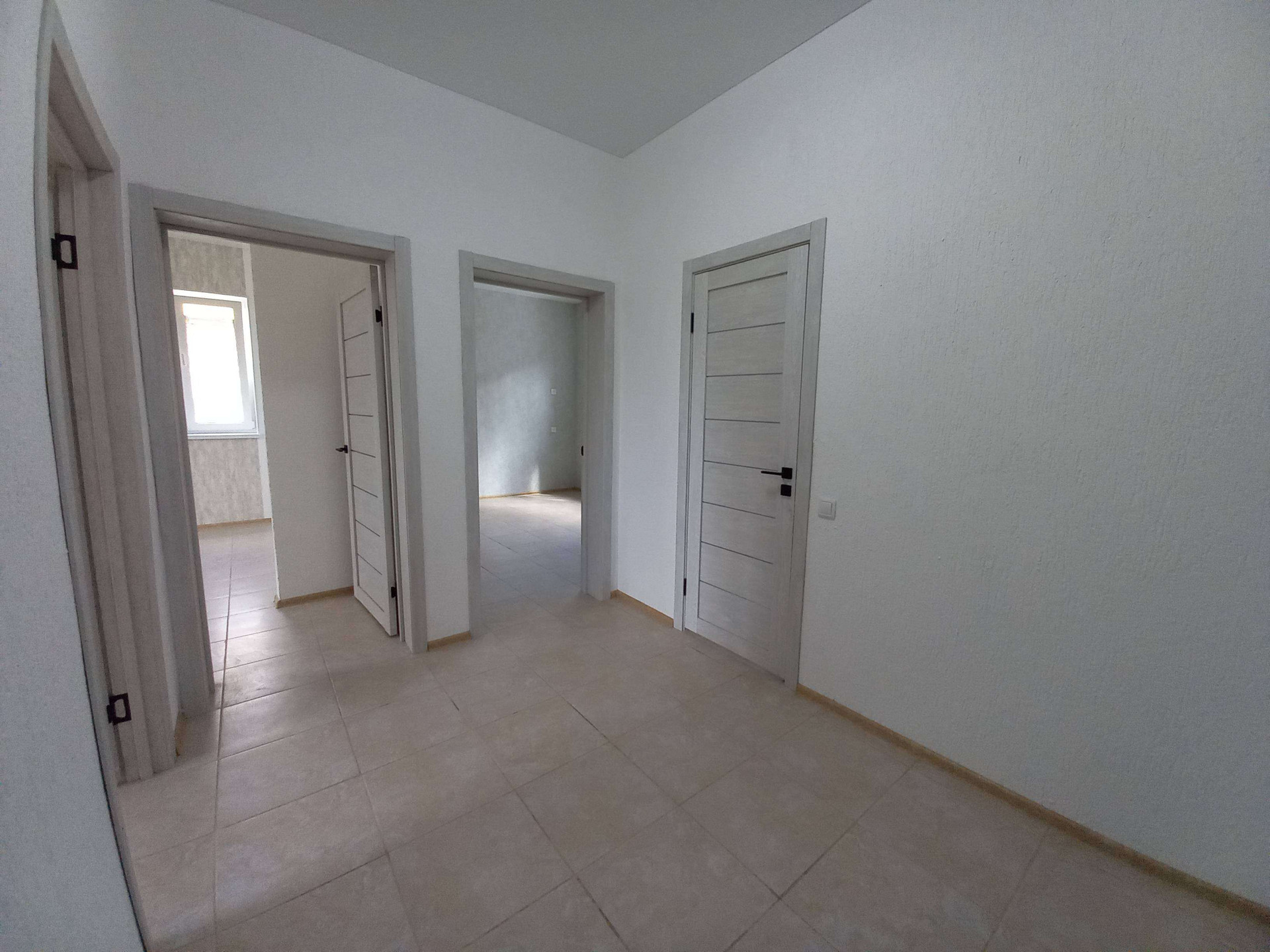 Просторная прихожая с местом для встроенного шкафа.