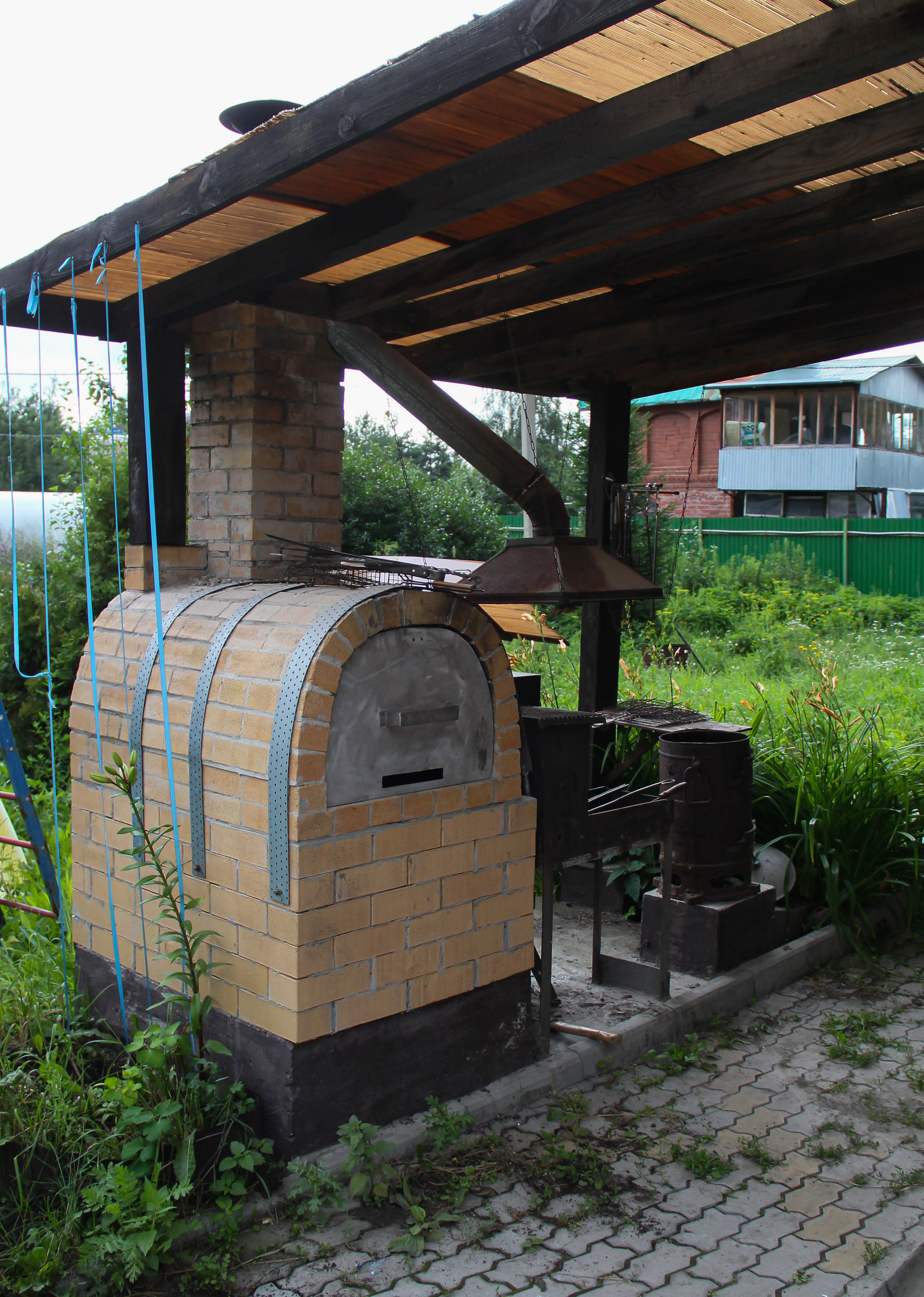 На участке: банька, в которой приятно попариться, мангальная зона (коптильня, русская печь), чтобы было вкусно, беседка, в которой любые посиделки проходят душевно), целых 2 теплицы для больших урожаев, курятник для любителей птиц, вольер для лучшего друга, навес для любимого железного коня, (также есть гараж).